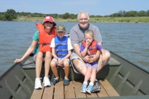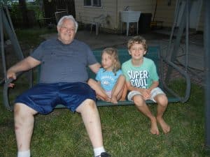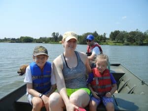 We had a really nice time in Nebraska spending time with Gramma and Pa and Aunt Alicyn and Uncle Andrew. We were also able to see some of the kids great-aunts and great-uncles as well as great-grandma Bonnie. It was really nice to be able to see more of the family and share a meal together. While in Nebraska, we were also able to go out to a lake and each of us took a turn driving my Dad’s little fishing boat. My parents wanted to burn out an old dried tree stump while we were there. We really wished that we’d had some lighter fluid to use instead of gasoline, because we weren’t really able to eat the marshmallows that we went to the trouble of roasting.