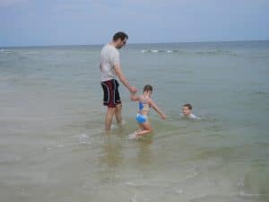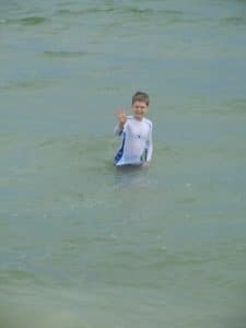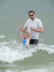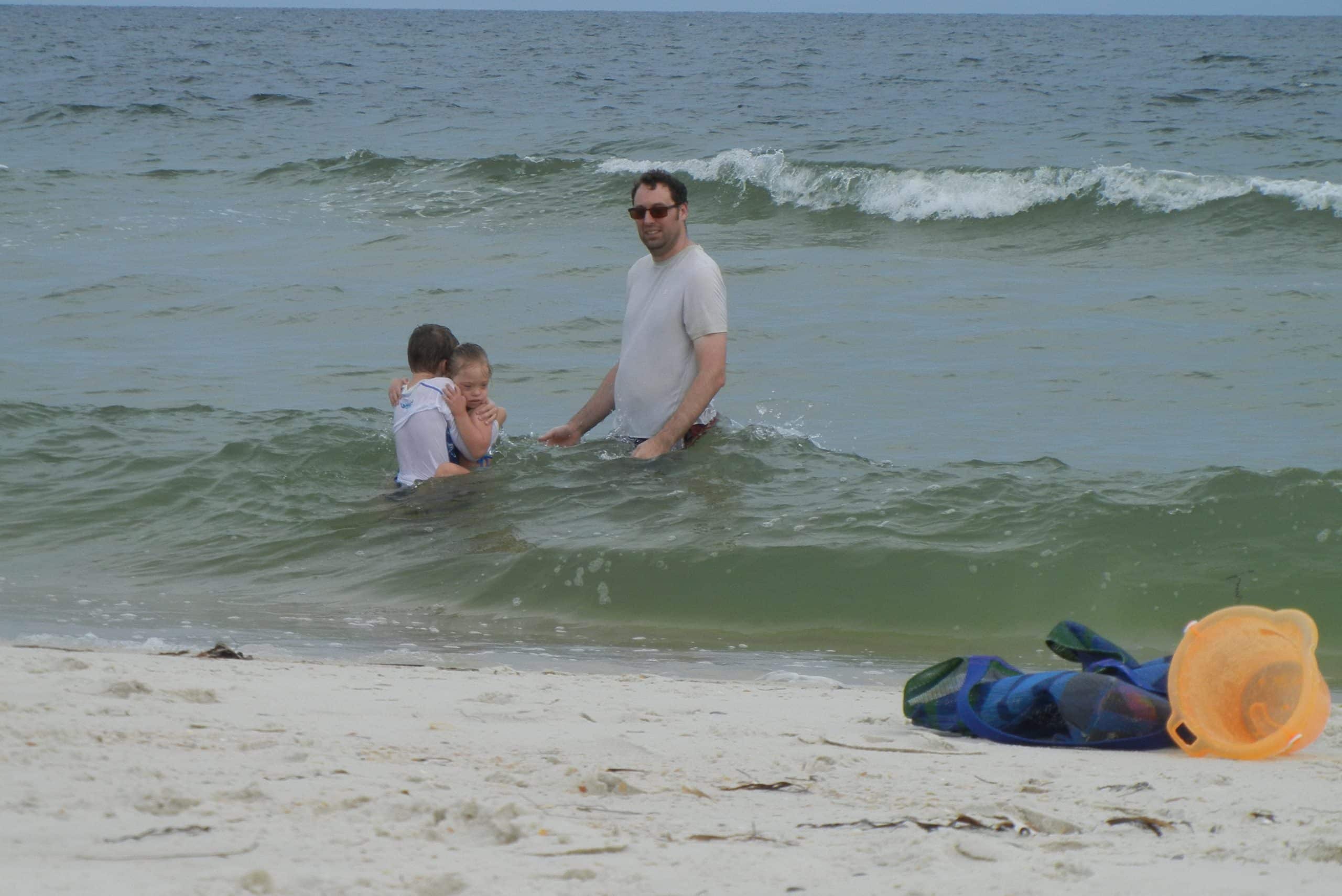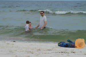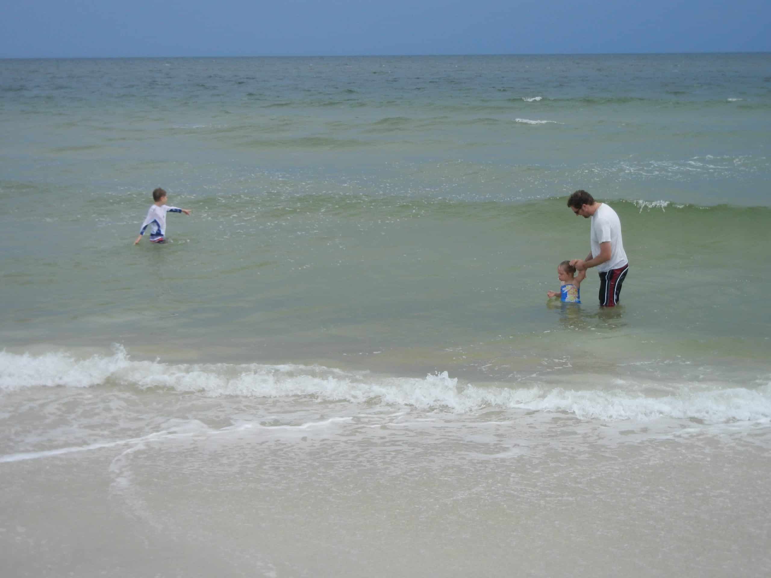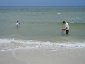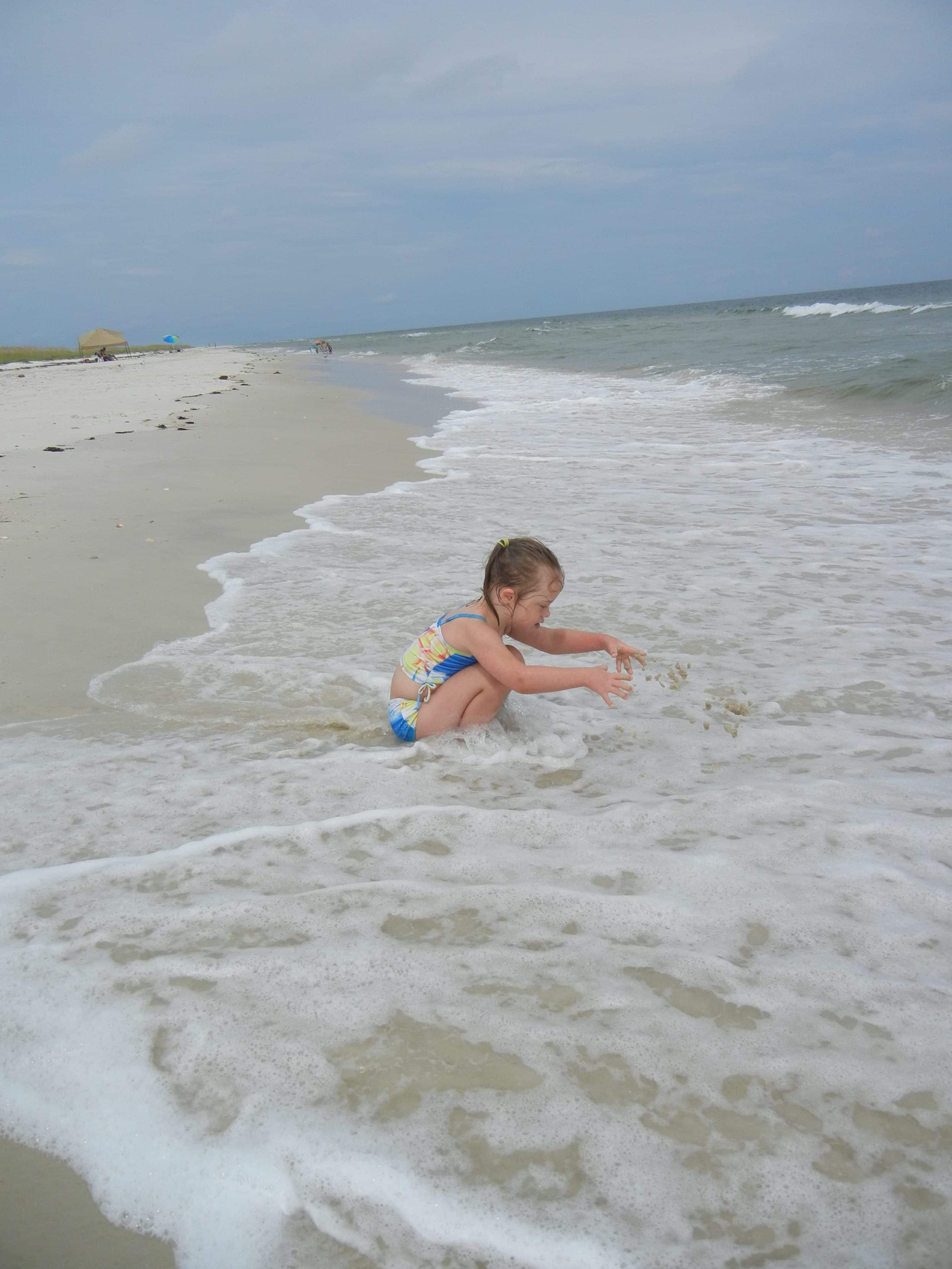 We tried to go to Carrabelle beach, but we got rained out. It poured on us and we thought our chance to make it to a beach during our weekend away was going to be lost. Luckily, it was less rainy after lunch so we decided to try it again. We saw that it looked sunnier in the distance and decided to head over to St. George Island State Park where we’d heard there was a nice beach. We were thrilled when we got there and it was not rainy at all! It turned out to be a very beautiful beach and we were glad that we took the extra time to drive down the highway a bit from Carrabelle.