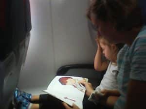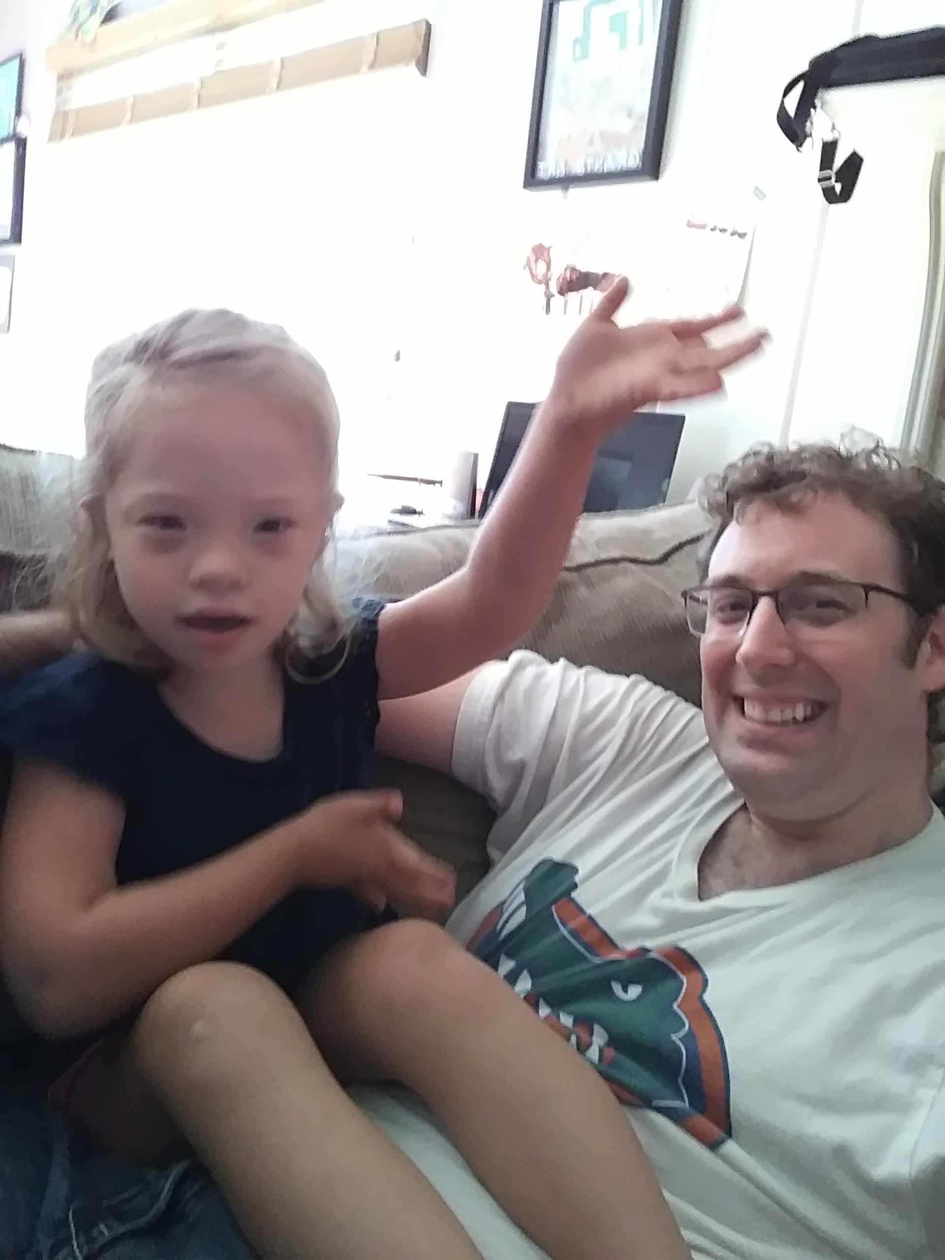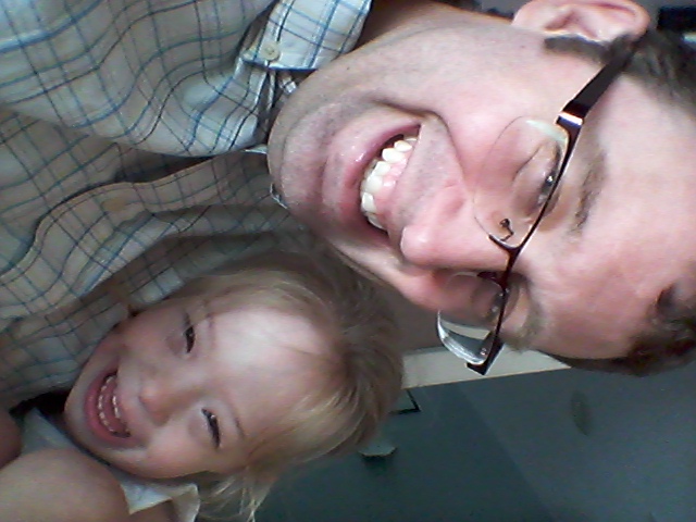 Jenna and Dada selfie. Silly Dada. Silly Grant. And Jenna reading a book in her chair.