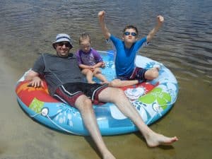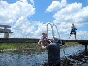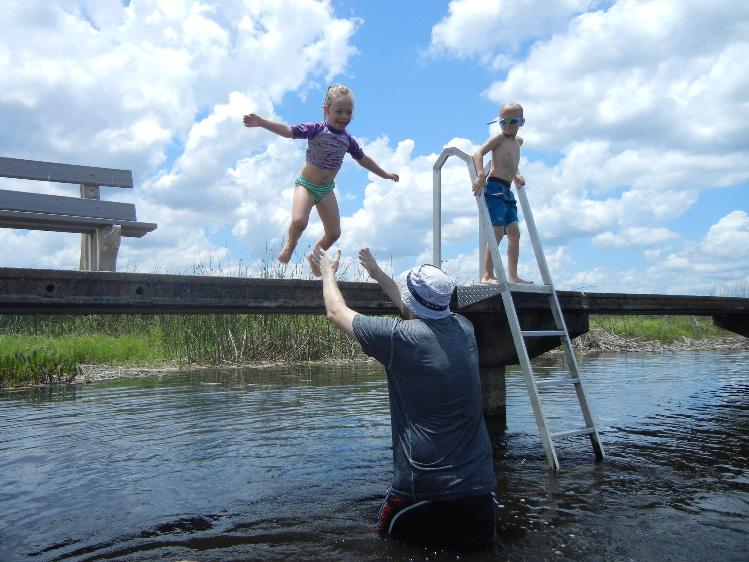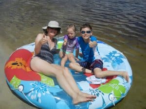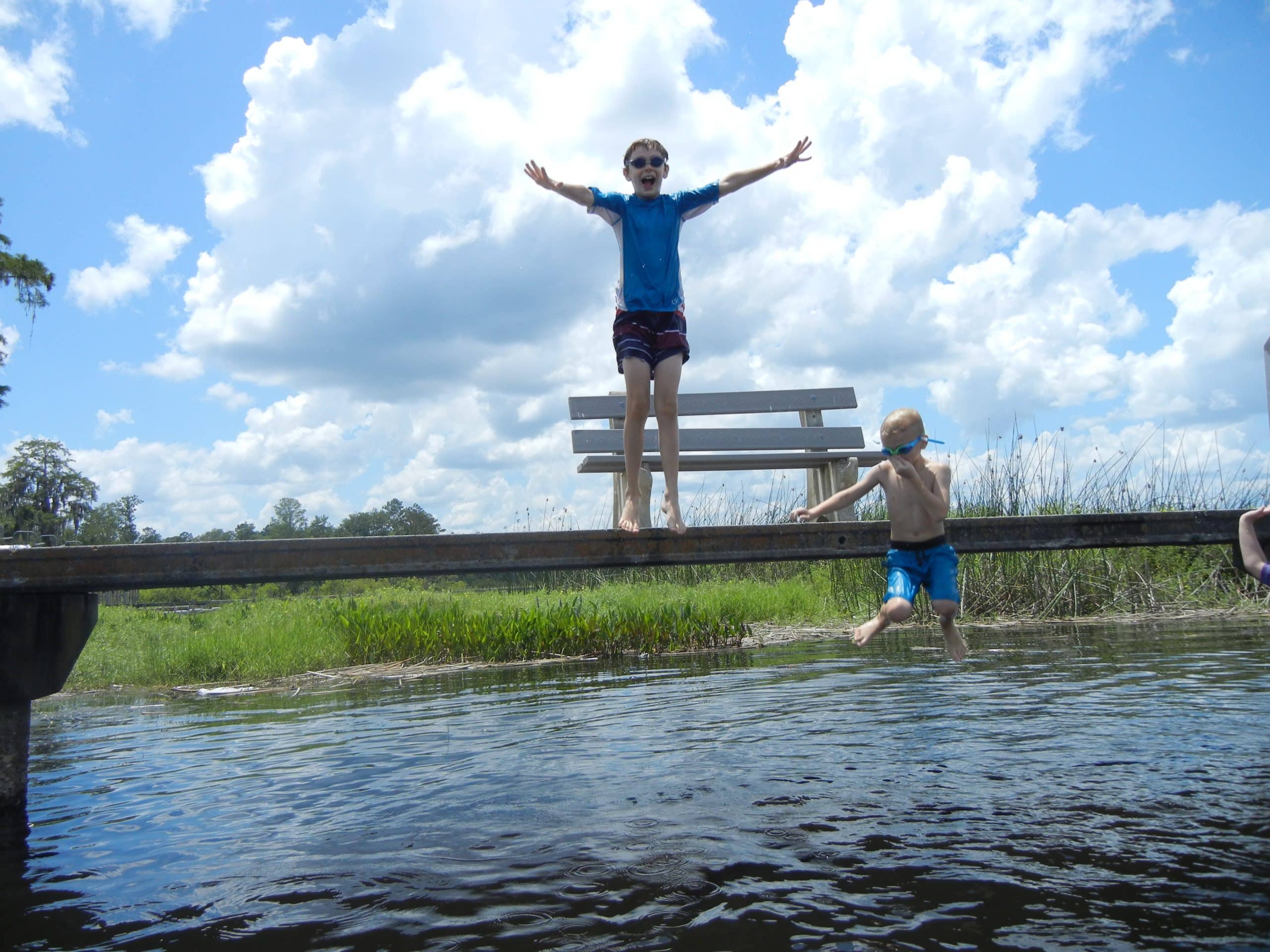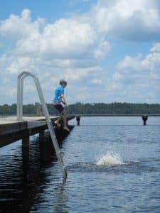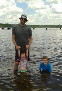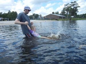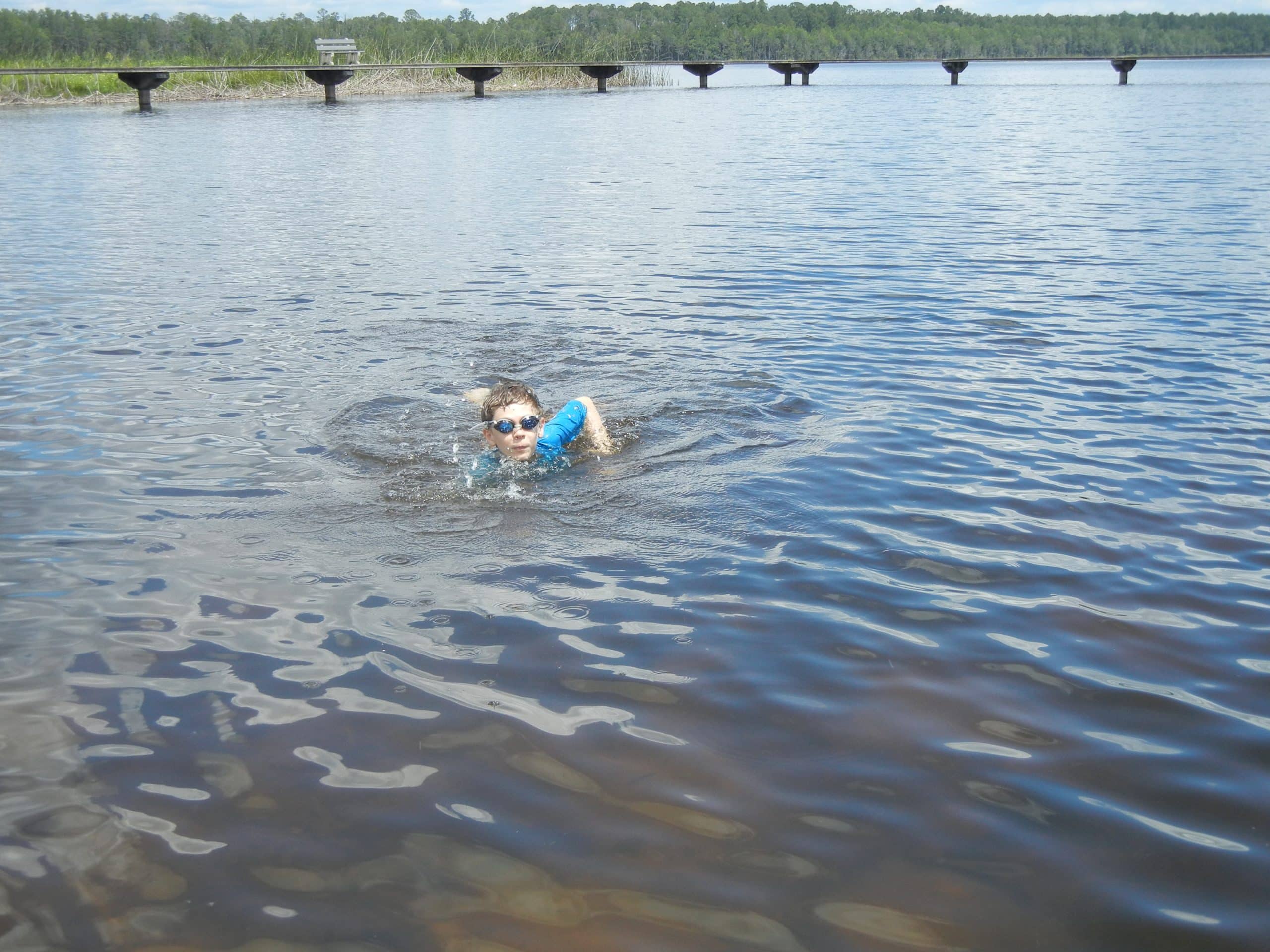 The kids enjoy driving over to the town of Lake Butler to play at the splash park and get into the lake. Carol had bought a new floatie that we wanted to try out. After a few minutes of blowing into the thing, I was really wishing that I owned an electric pump. Before we’d even gotten a chance to get in the water, some folks walked over and let us know that there had been some alligator sightings earlier in the day. After a bit of discussion, we decided to keep an eye out and take our chances.