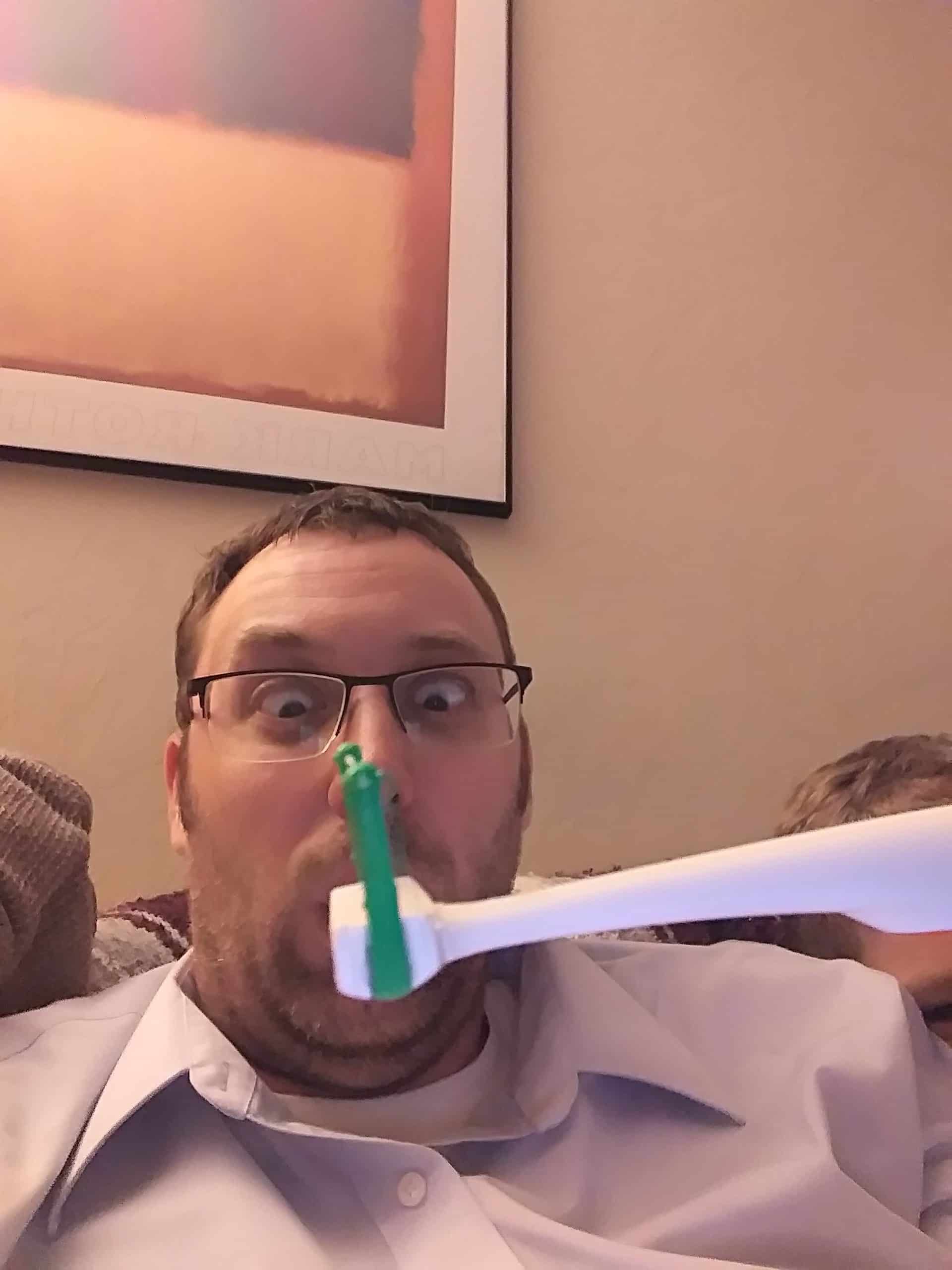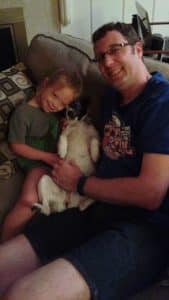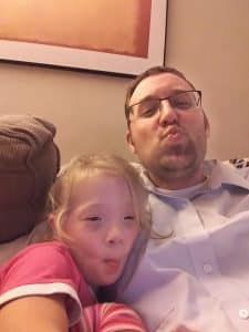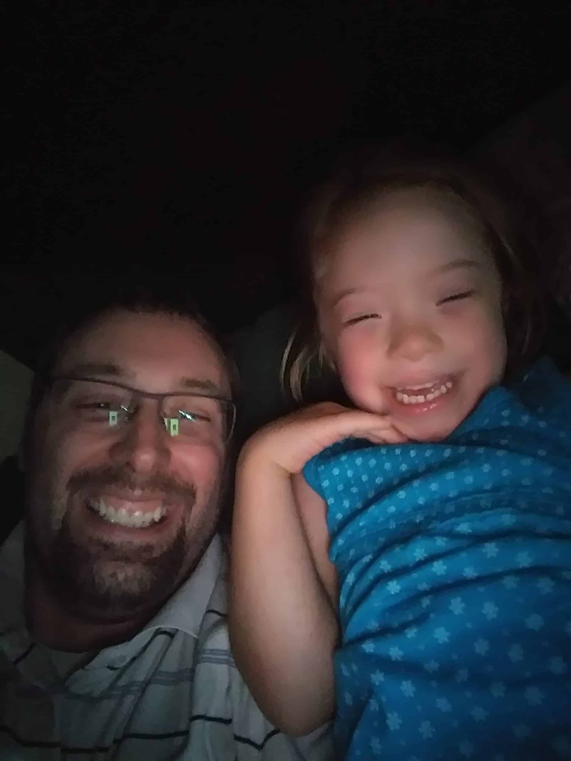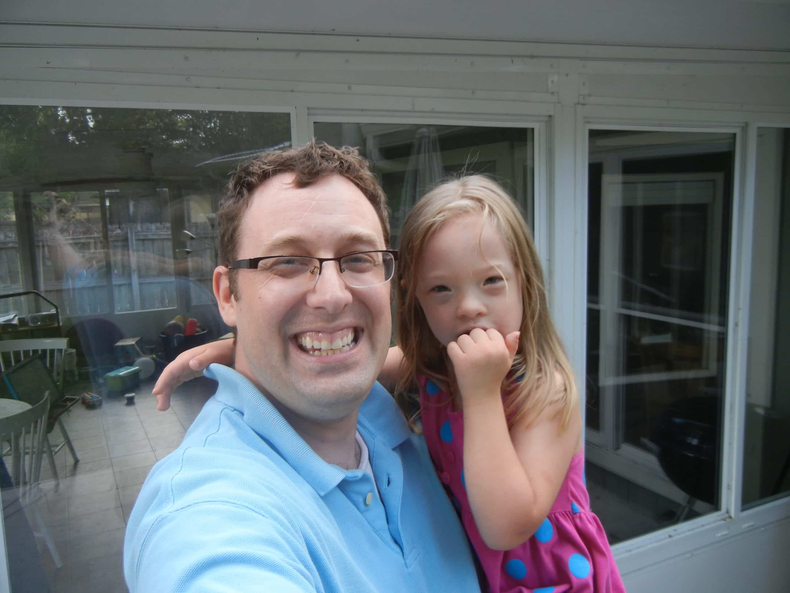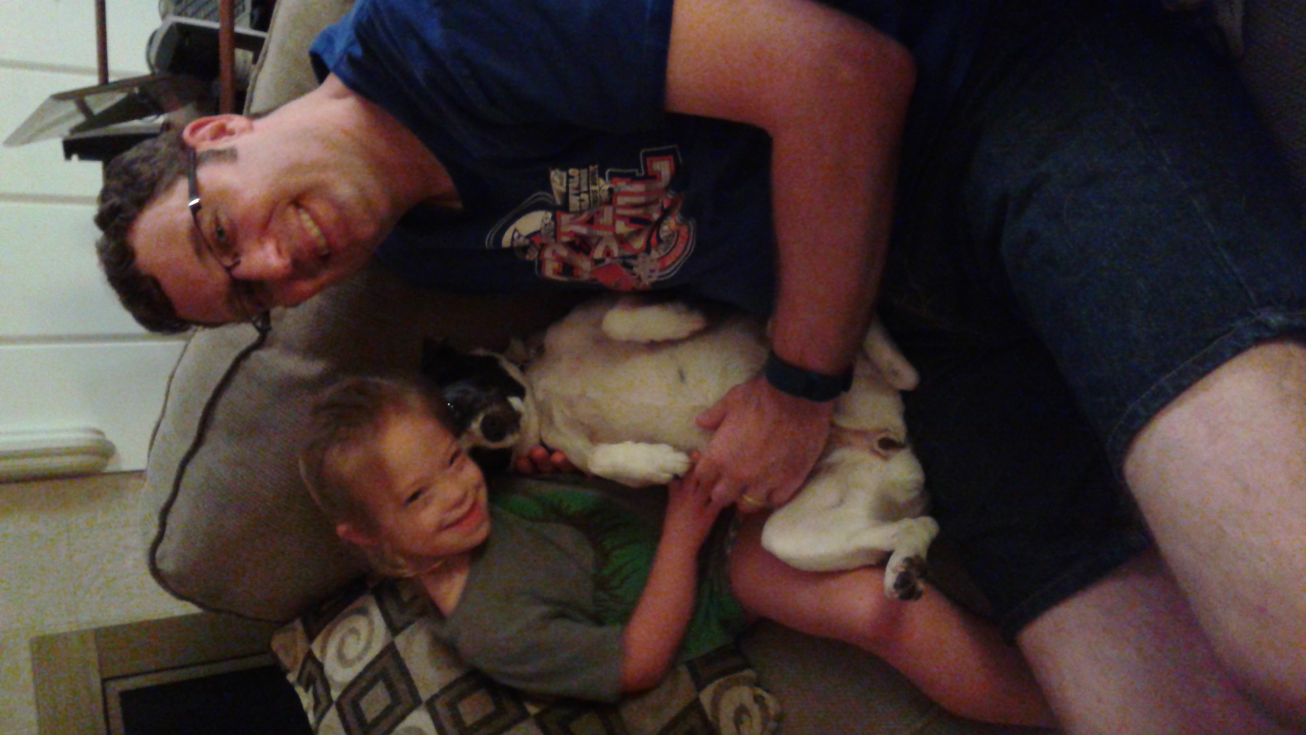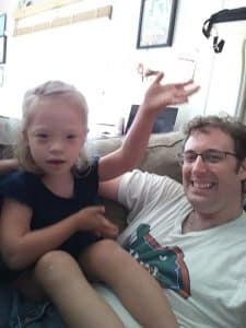Dada and Jenna Selfie. Dada and Jenna holding Lucy “like a baby”. Happy Jenna. And silly Grant.
