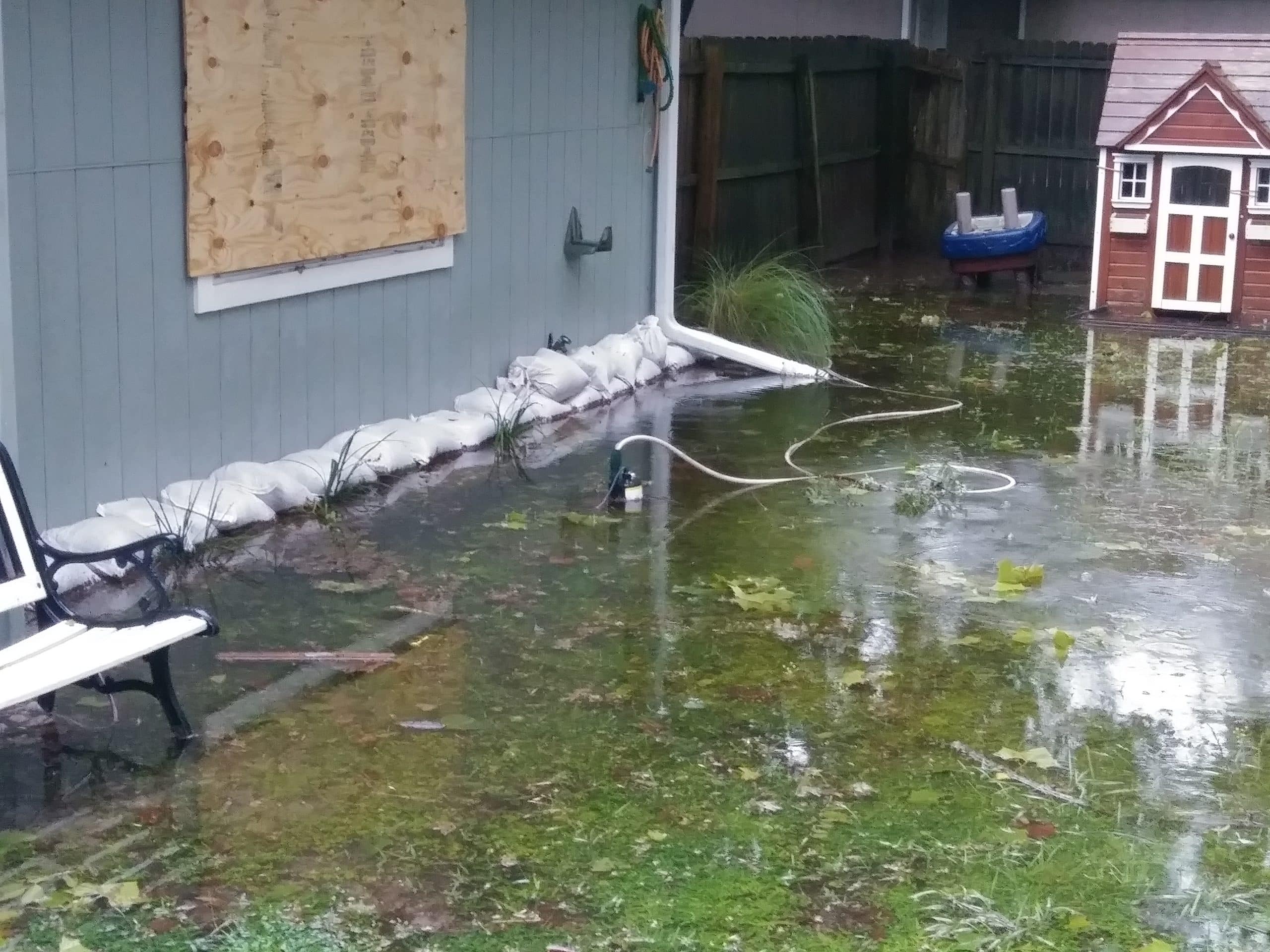 We lived through our first (and hopefully last) hurricane. We were feeling ok about things until we heard that the storm might be strengthening again. We freaked out at the last second and spent the day before the storm finding someplace that still had plywood and boarding up the windows. The winds got pretty bad during the night, but we didn’t experience any major damage. No trees down, just branches. Three sections of our fence blew down. We were lucky compared to some people in the area. We only lost electricity for less than a day, but we had purchased a generator so we were ok. Our backyard flooded but the water didn’t make it into the house because we were able to run a small pump to pump the water out. I was prepared for a lot more water. Our street was flooded for half the day.