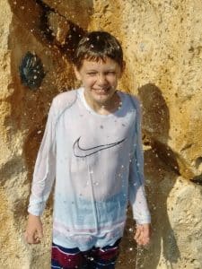 It is hard to see, but the one picture is of Grant getting ready to go down the water slide by himself. First time ever for him. Carol took the kids to the splash park the day before the hurricane hit because school was cancelled.