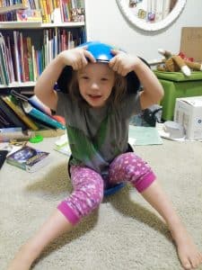 Silly Grant. Silly Dada. Jenna and Dada selfies. And Jenna with a half a globe on her head and the other half under her bottom.