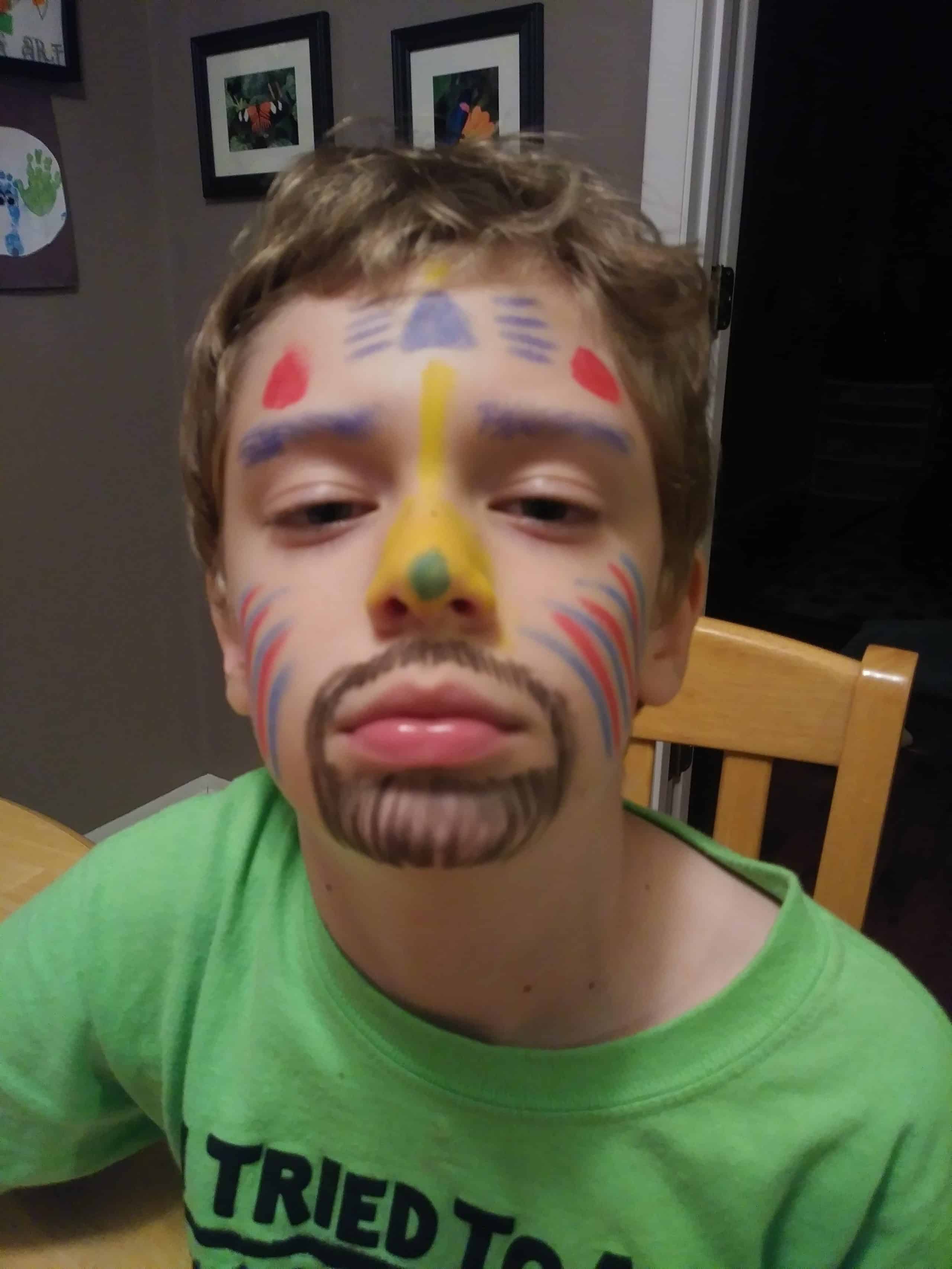 Silly Grant. A piano duet. Pretending to sleep. Laughing Jenna. And fun with face paint (Grant painted me; Jenna painted Carol).