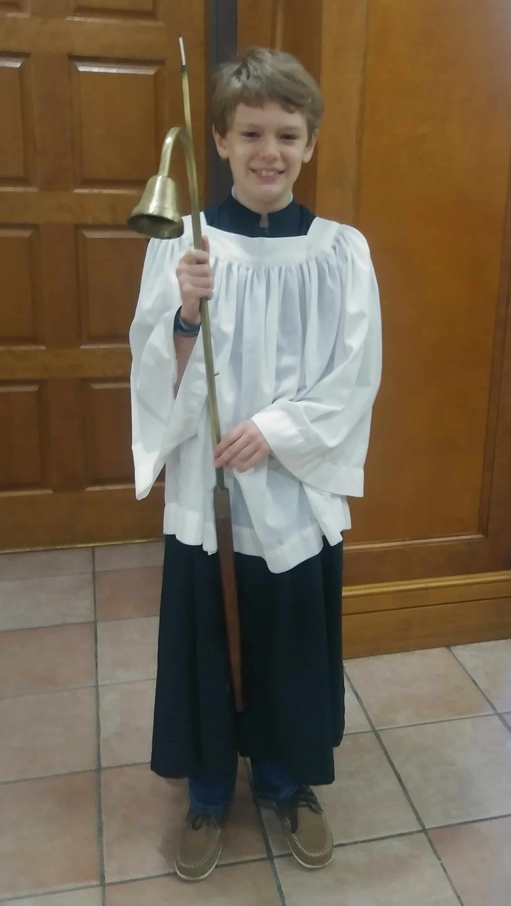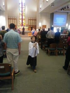 They were looking for volunteers for elementary school kids to serve as acolytes at church, so Grant decided to serve. He’s done it twice now and does a great job.