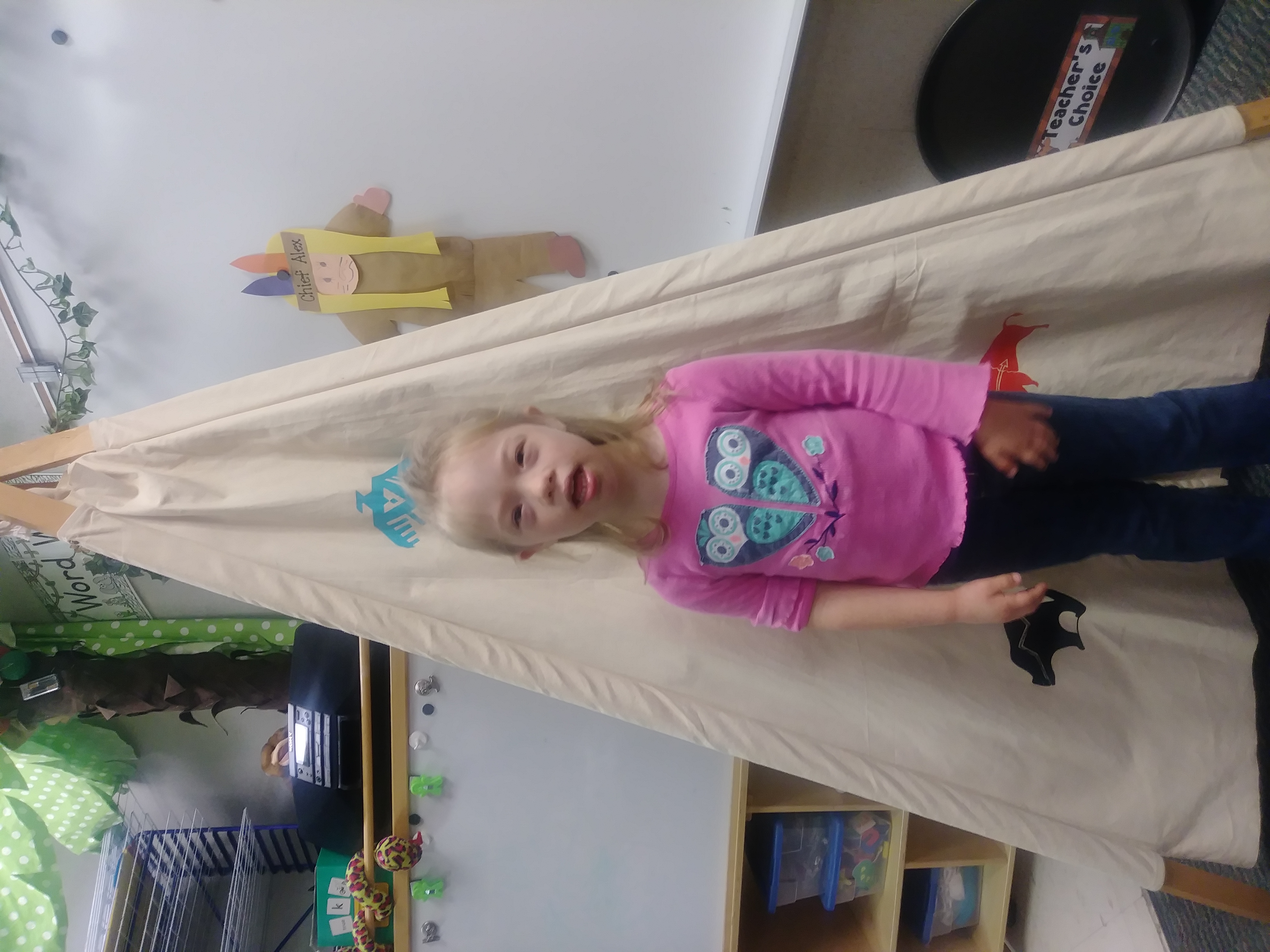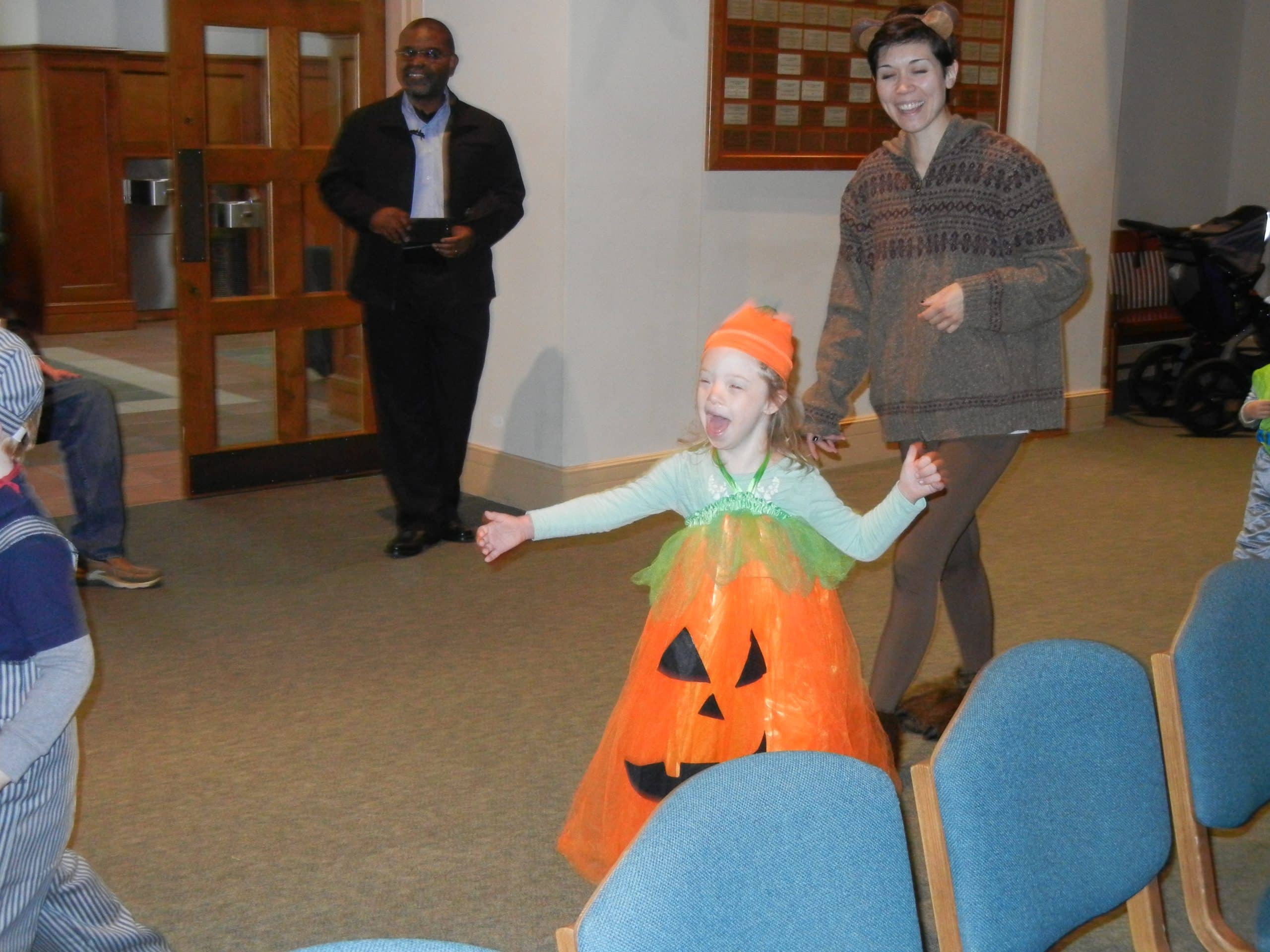 The Preschool that Jenna attends does a Halloween party and parade, and Carol volunteered to help. Jenna seemed to enjoy being in her costume and playing the games and eating the snacks.