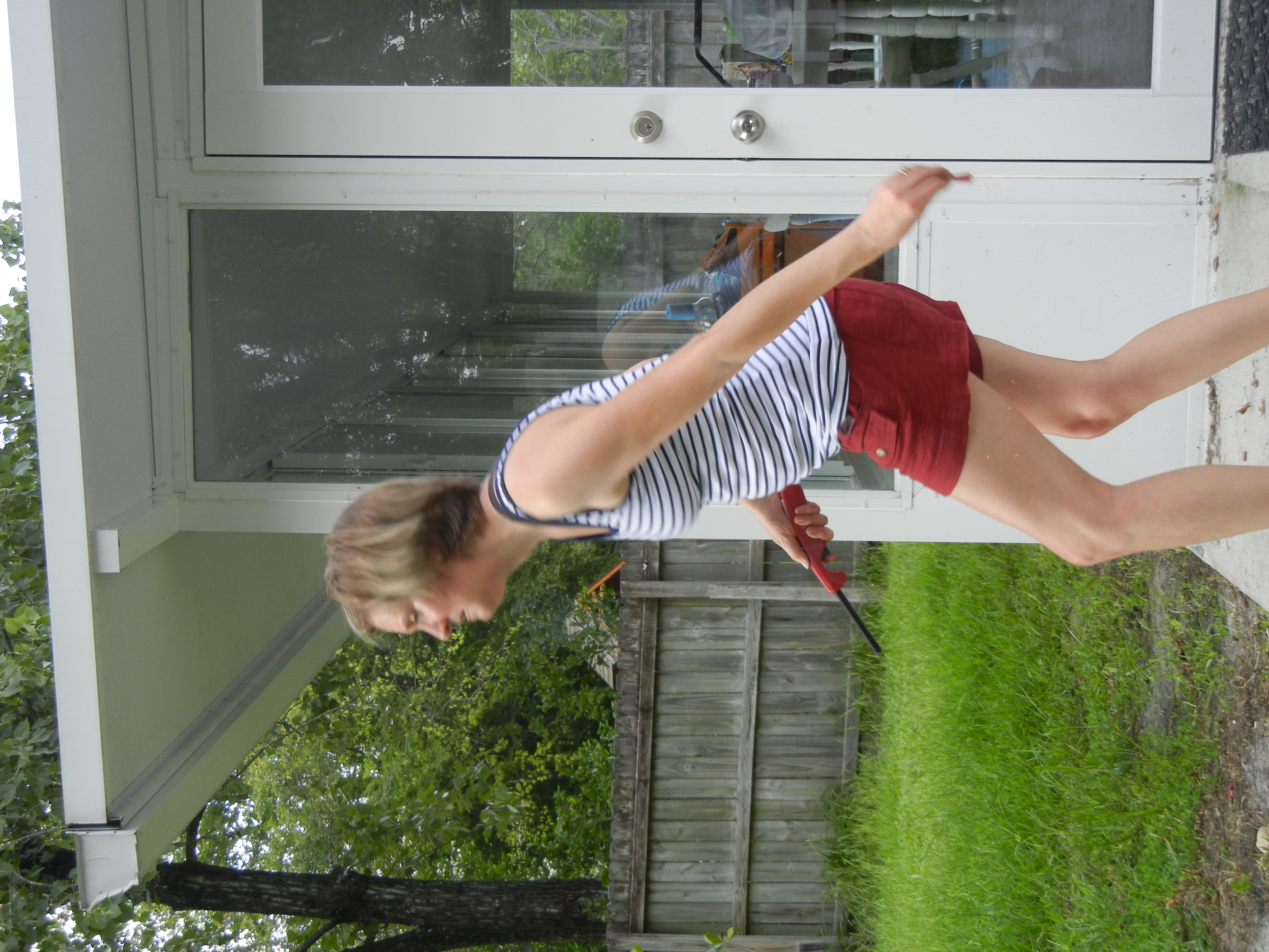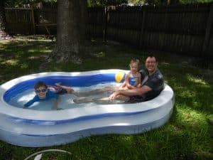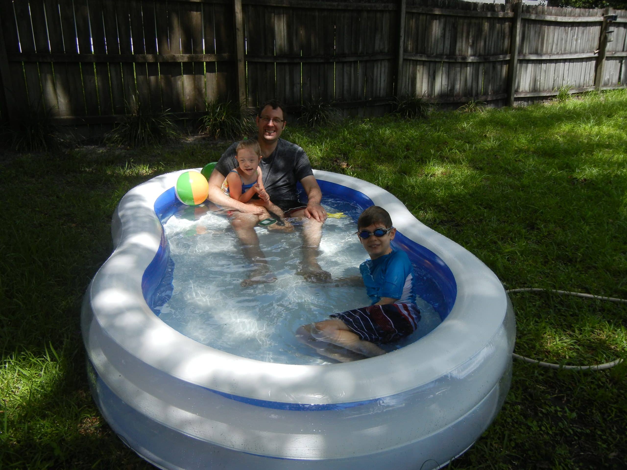 We bought a new inflatable pool. And quickly realized that we should have bought an electric pump as well. (I should have learned my lesson after blowing up the floatie at the lake nearly made me pass out.) I will be buying a pump before we inflate this again.