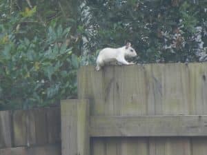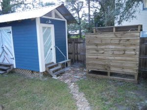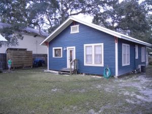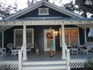 We decided to do a last weekend getaway before school started. Carol found us a really cute little house to rent for two nights in a nice small town called Carrabelle up in the Florida panhandle. It was only 3 hours away and some of the drive was right along the Gulf and was quite beautiful. The cottage was built around 1910, but had been nicely restored. The house had two bedrooms with one bathroom, an open kitchen/dining area and a living room area. It had a separate building with a washer and dryer and also an outdoor shower. It had a nice fenced yard around it and they allowed pets, so Lucy was able to go with us. We really enjoyed staying there. They have these crazy albino squirrels there.