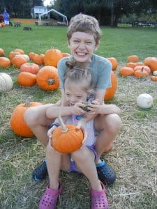 While Carol was off getting in tune with nature and learning deep breathing techniques at the yoga retreat, I took the kids to a pumpkin patch to pick out pumpkins for the yard.