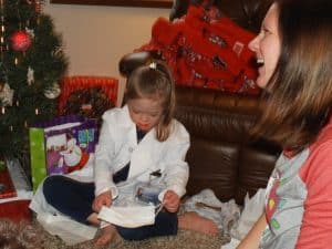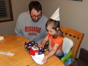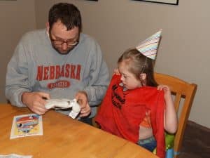 Jenna turned 6 on December 14th. We let her open up her present from Nana on her actual birthday and saved the rest for the weekend, when we celebrated by having my parents, my brother and his wife, and their son Beckett to the house for a party. Andrew and Alicyn even brought their dogs to celebrate with us! Jenna seemed to really enjoy being able to celebrate with family for her first birthday in Nebraska. She loves the movie “Frozen” and was delighted with her Elsa dress and doll.