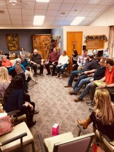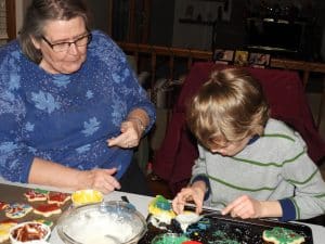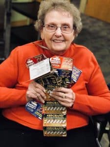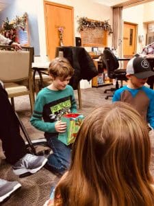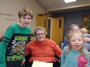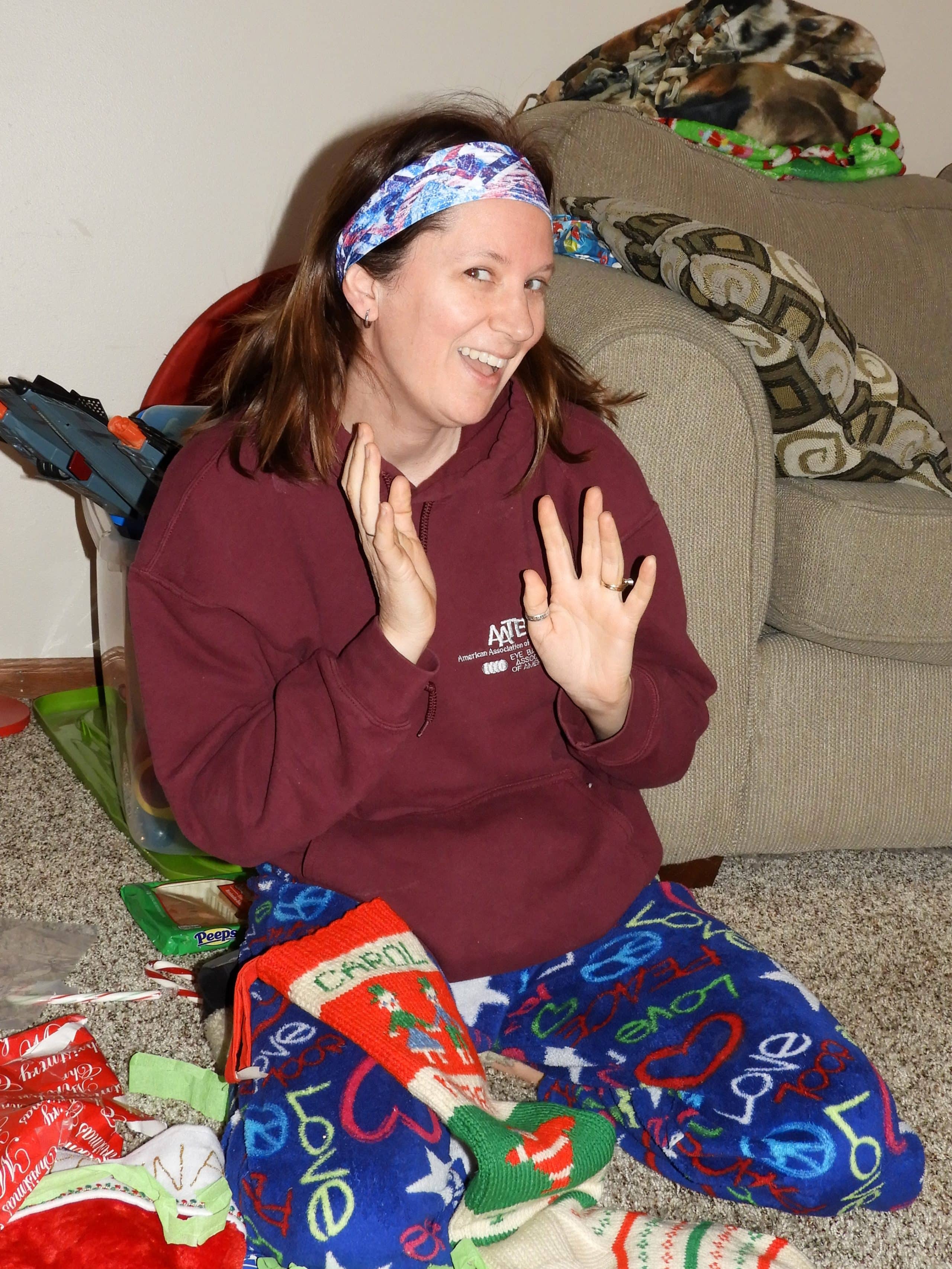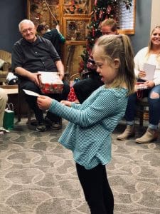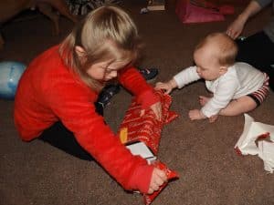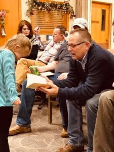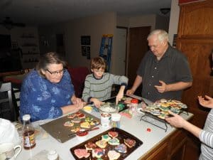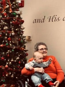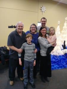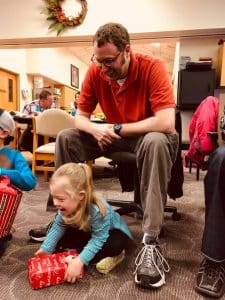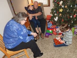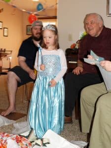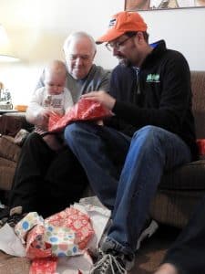 My Grandfather Bob passed away in late November and we celebrated our first Christmas without him since he married my Grandmother 20+ years ago. In early December, not long after Grandpa passed away, we had a family gathering at the nursing home where my Grandma Bonnie is living (and Grandpa Bob had been) to celebrate Christmas with her. It was a nice get together with 3 of her 5 children and about half of her grandchildren and great-grandchildren. Grandma Bonnie had us all bring a $5 gift and she read us a Christmas story that made extensive use of the words “left “and “right”. Each time we heard one those words we had to pass the gift to the person next to us in the direction. We also knew Grandma Bonnie loves lottery scratch off cards, so some of us secretly used our $5 to buy scratch off tickets, which we gathered together and presented to her after we’d finished playing that “pass it game”. She was thrilled. She even had a separate “pass it game” for the four great-grandkids that were at the party. Jenna thought it was funny to keep passing the gifts back and forth before getting to open one. There was another Christmas gathering at the nursing home closer to Christmas for those that couldn’t make it to this one, so I hope that Grandma Bonnie had a good Christmas and didn’t feel too alone during the first holiday without Grandpa Bob.