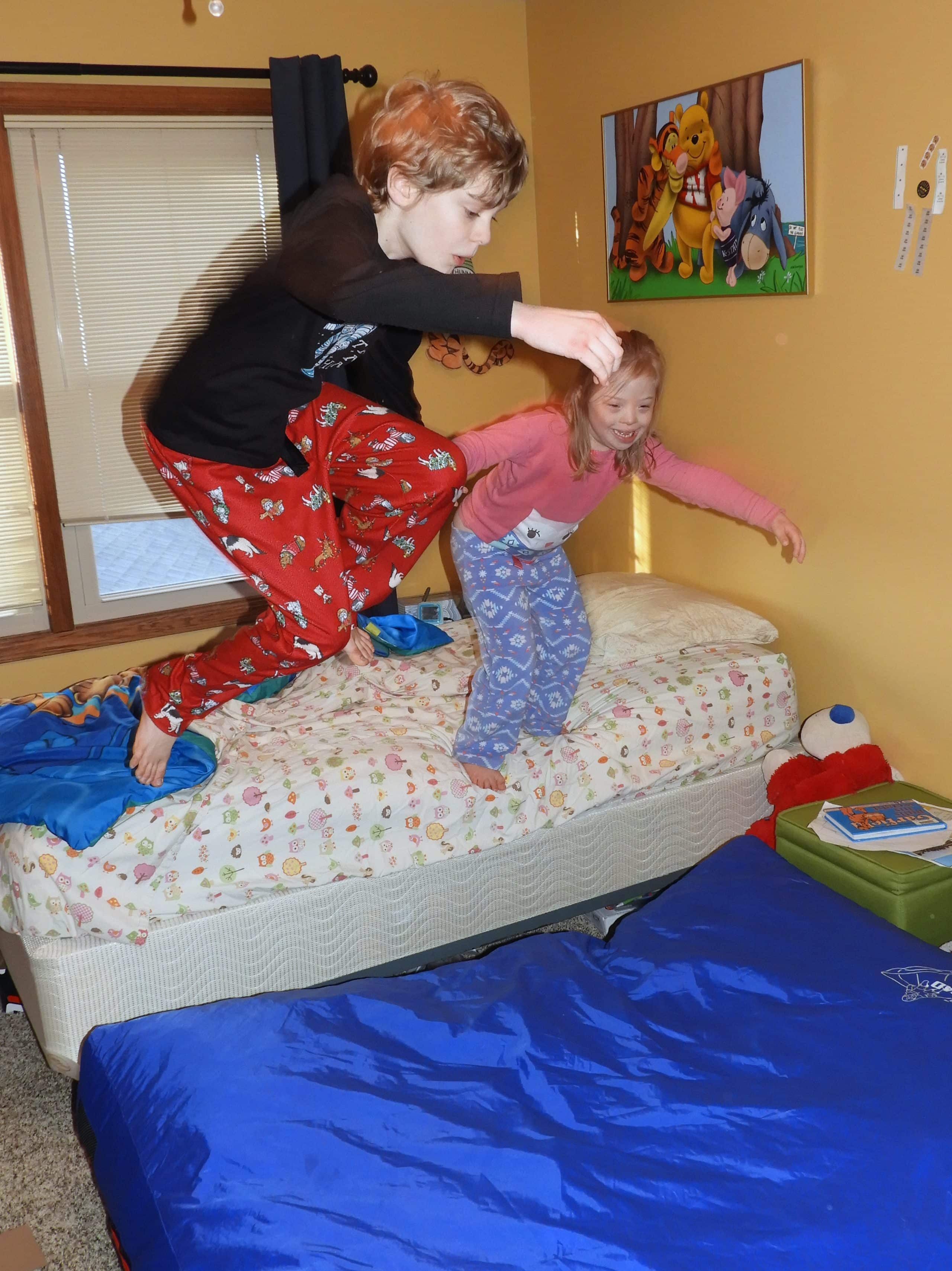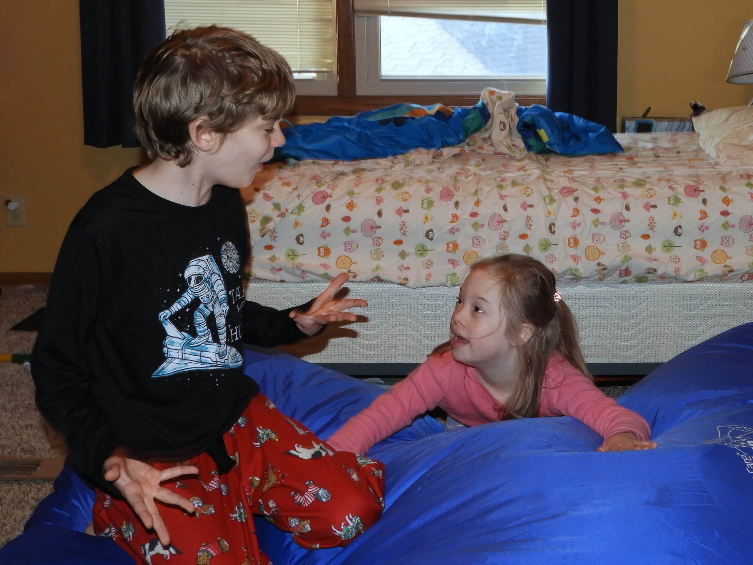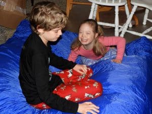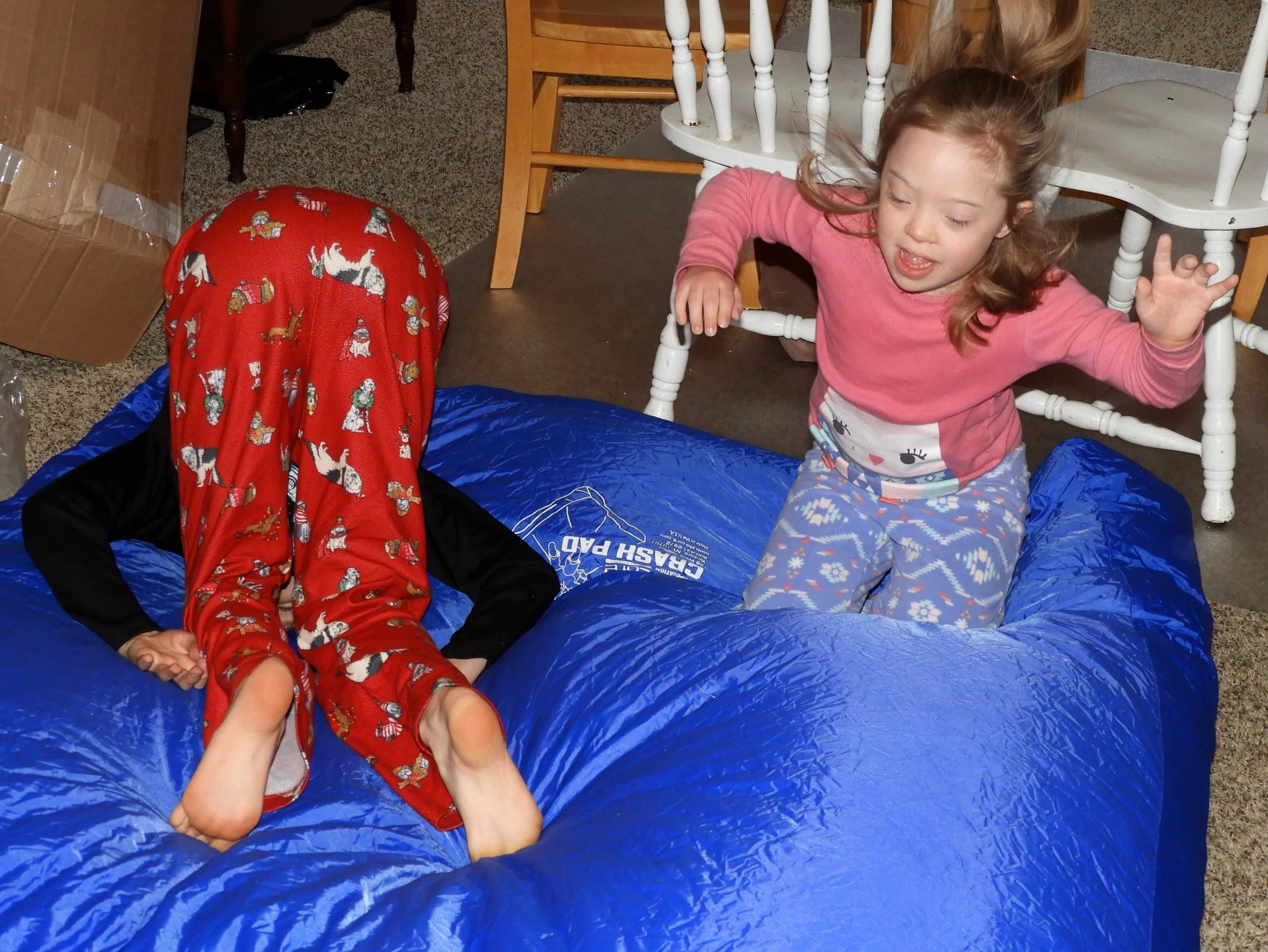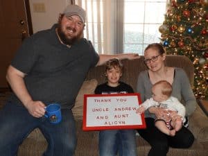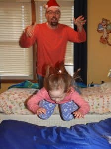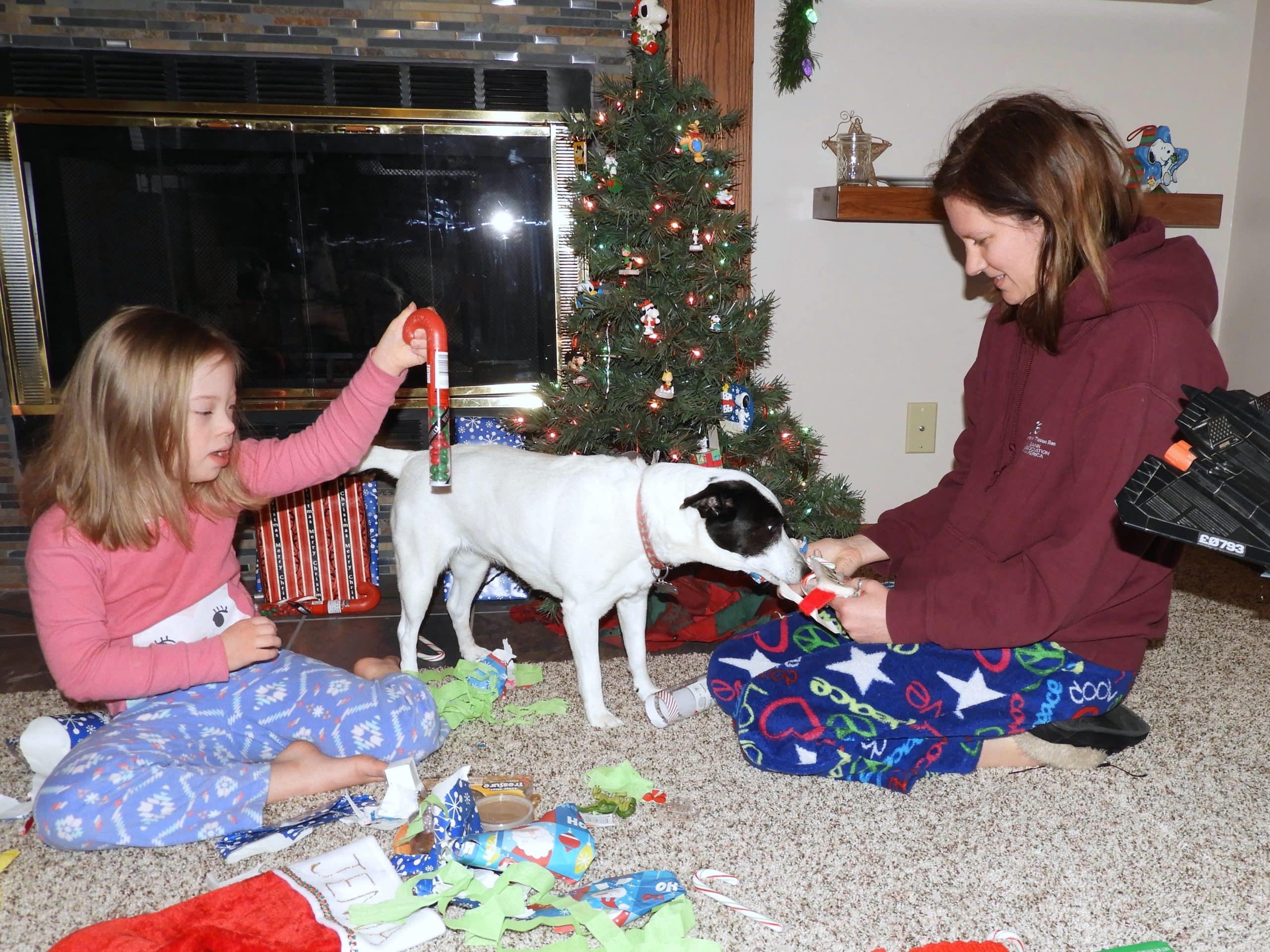 For Christmas this year, we hosted Gramma and Pa Dungan on Christmas Eve. We opened presents, decorated cookies, went to a Christmas Eve service at the church we’ve started attending, and then enjoyed some excellent soup that Carol made in the crock-pot for dinner. On Christmas Day, we woke up to find that Santa had found us in Nebraska. We opened presents, Carol again cooked an excellent meal, and we enjoyed being together as a small family. The kids enjoyed all their gifts, but the gift that brought the most enjoyment was the crash pad that we all took turns jumping on. On the 29th of December, we celebrated Christmas again – this time at Gramma and Pa’s house with my brother and his family as well (including their dogs).