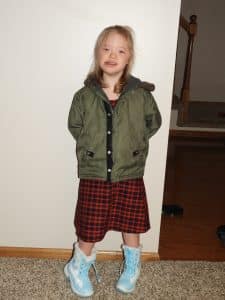 Jenna dancing, Jenna and Grant in an old phone booth outside Spaghetti Works in Omaha, Silly Nate selfie, Jenna and Dada selfie, Grant and Mama selfie, Grant winning at bowling, Lucy laying on a blanket in Jenna’s room, silly Grant selfie, the world’s largest elf, Christmas Snoopy, Jenna taking her own picture, Grant with ponytails, Nate trying to figure out which shirt/tie combination to wear to his Grandpa’s funeral (I went with the blue tie), and Jenna’s bold choice in outfits – a dress and snow boots.