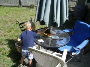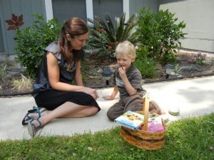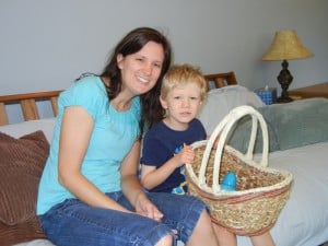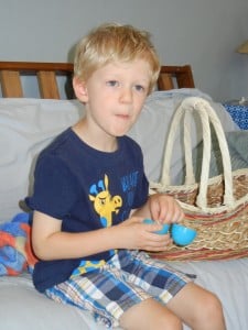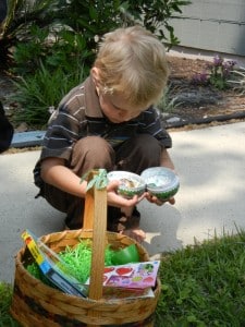 Easter was a relatively low-key affair this year. We didn’t go over to the big Easter egg hunt at our church this year and opted instead to just search for eggs in our backyard. Grant also got to dye some eggs at the house. On Sunday we went to the 11 am service at Trinity and then went home to see what the Easter Bunny had brought Grant. Sunday night Carol cooked a delicious Easter Dinner. Here are some pictures: