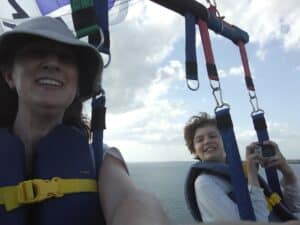 I got home on a Friday night from the company meeting and we left on Sunday to go on a Spring Break trip to Fort Meyers Beach, Florida. We had hoped to be able to meet up with some of our friends while we were in Florida but this was the time that Covid-19 started making its way into the US, so we instead decided to stay as removed from other people as we could while we were vacationing. For the most part, we were either at the rental home or at the beach a block and a half away. We would often go to the beach in the morning, go back to the rental house for lunch and then return to the beach for the afternoon. Not a bad way to spend a week. We also made a friend while we were there. It was a dog named Lola that lived in a house on our walk to the beach. She liked to greet us every time we walked by. Grant and Carol went parasailing together and loved it!