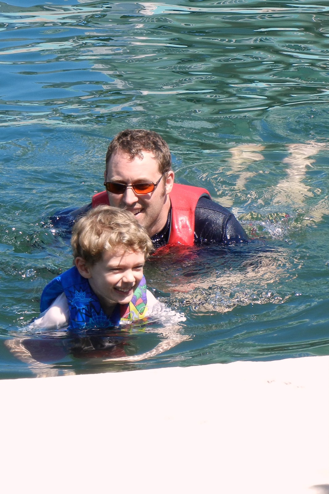 We were able to get away from Gainesville during Grant’s spring break this year and head down to Long Key to see Nana Reid. We started down to the keys on Monday, March 23rd and were able to stay until the morning of March 28th. Besides a bit of rain the first full morning we were there and a storm the night before we left, we enjoyed great weather. We were able to do quite a few things in our short time there and had a ton of fun. We enjoyed: swimming in the canal, going to the pool, seeing dolphins and sea lions at the Dolphin Research Center, walking a trail out to Crane Point and seeing the wild bird sanctuary at Crane Point Hammock, splashing in the ocean at the Outdoor Resorts beach, viewing sunsets, riding on a golf cart, and seeing tarpon while out on a boat ride (thanks Bill!). As always, Nana spoiled us with her hospitality and great meals (including a delicious berry pie!). We love you Nana!