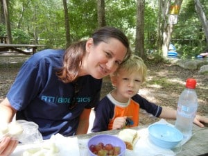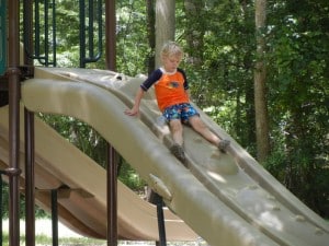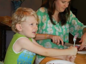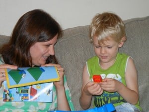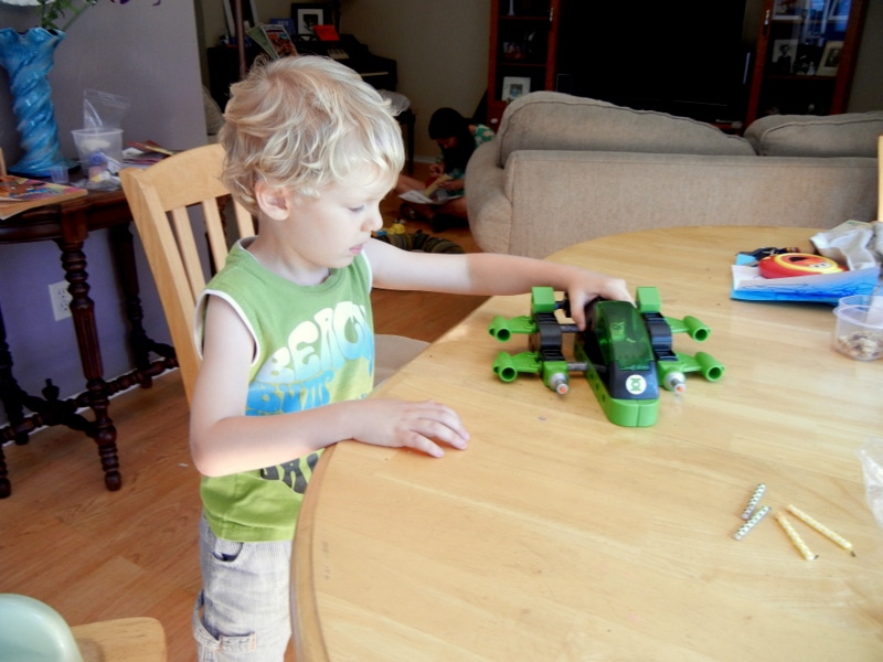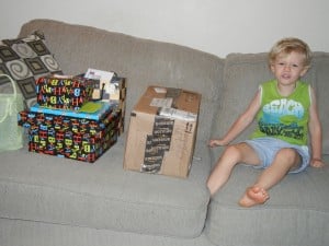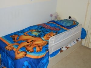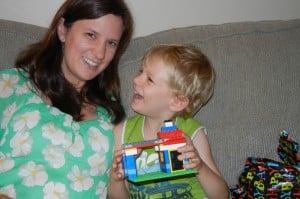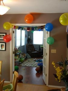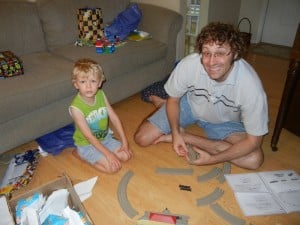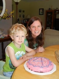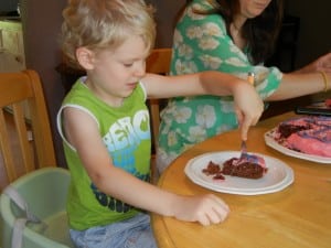 This year Grant’s birthday fell on a weekend so we turned the entire weekend into a birthday celebration. On Friday night, when I got home, Grant and I took apart his crib and moved his new “big boy bed” into his room. He was quite excited to get the bed and we had to lay on it for a while together after we put the bedding on it.