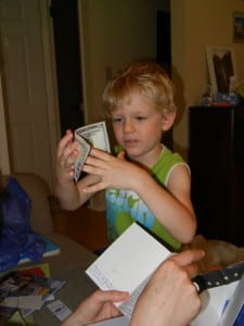 The money went into his piggy bank…I could go for a “smushy”, we might need to make a trip to the gas station.