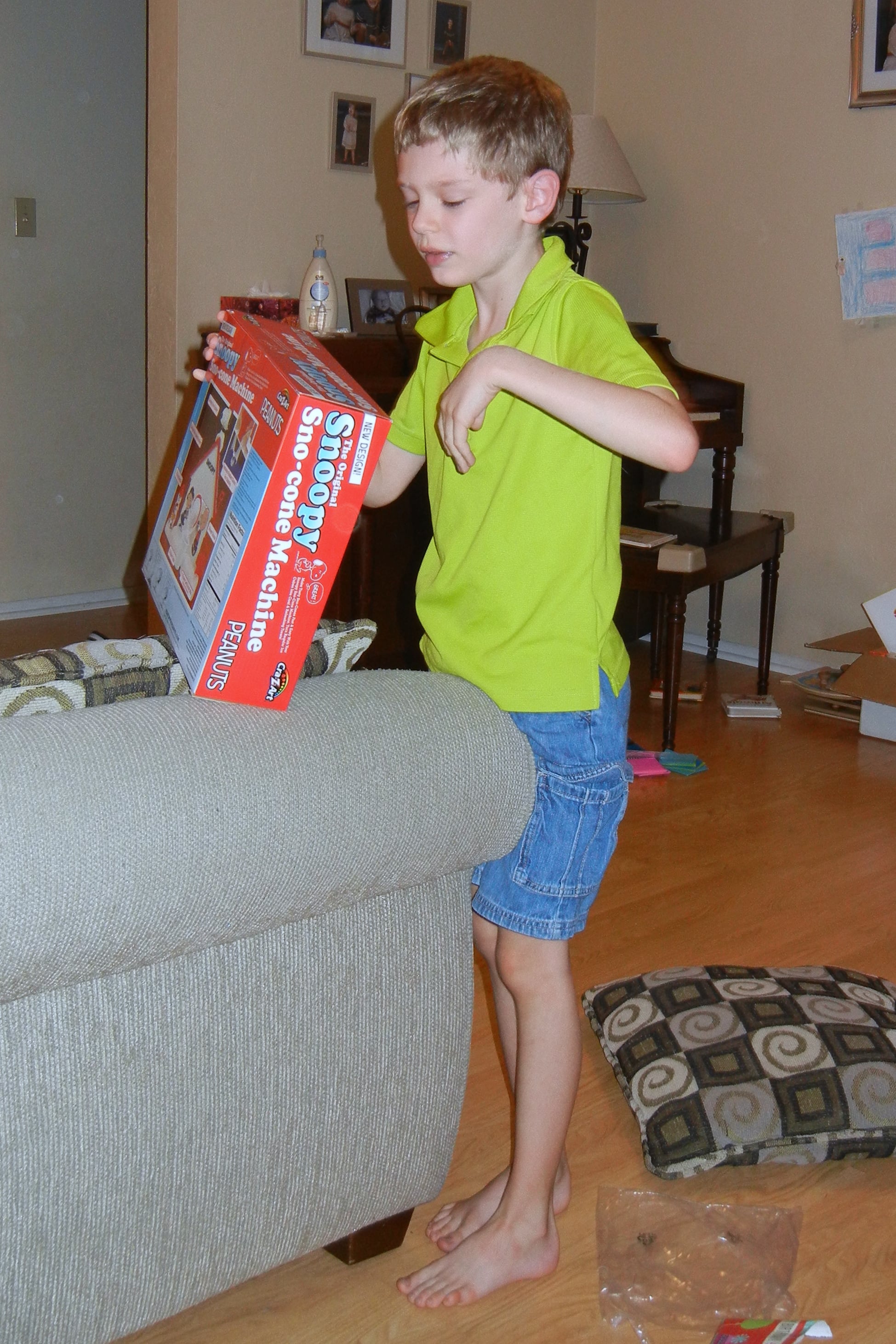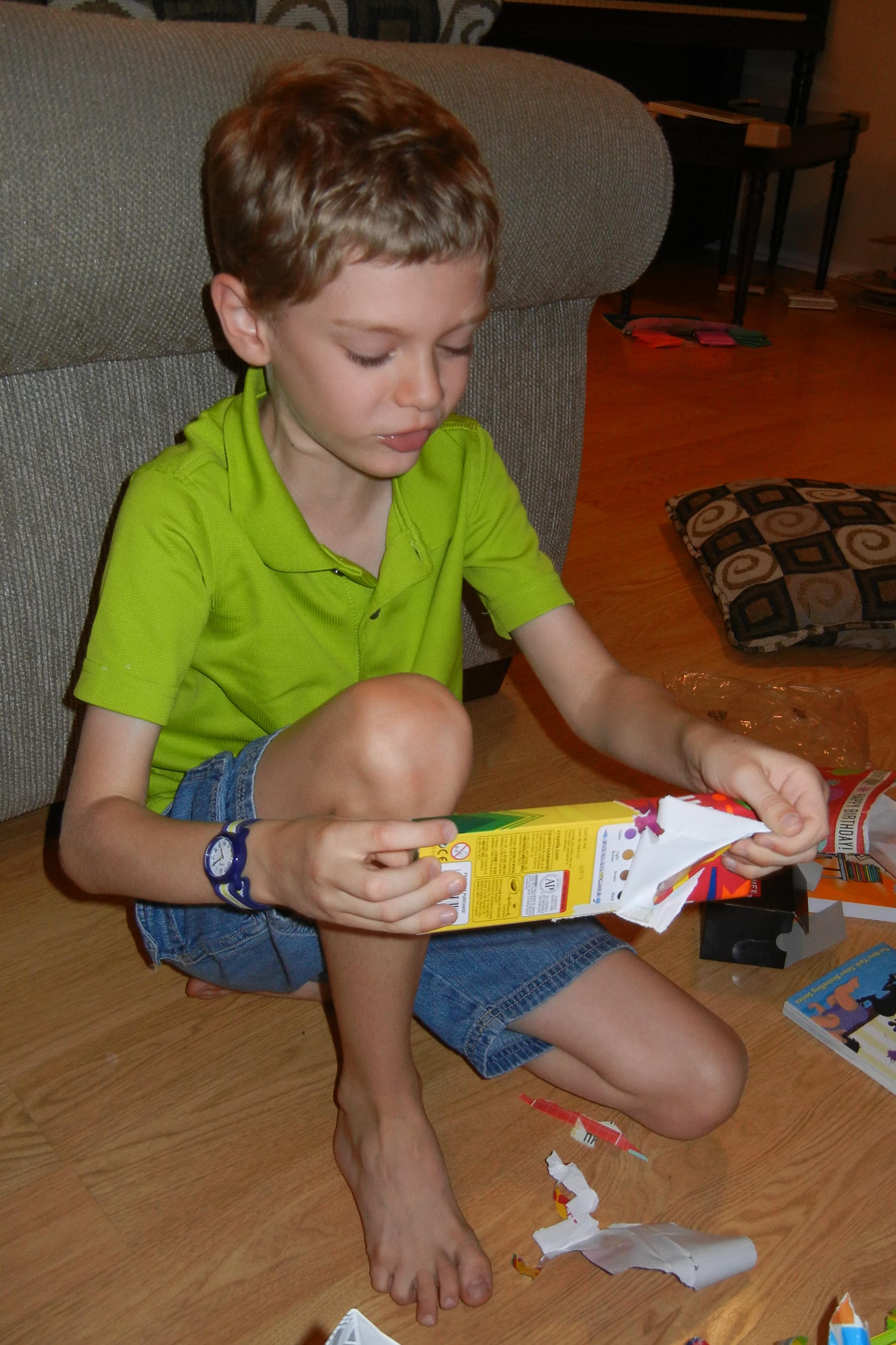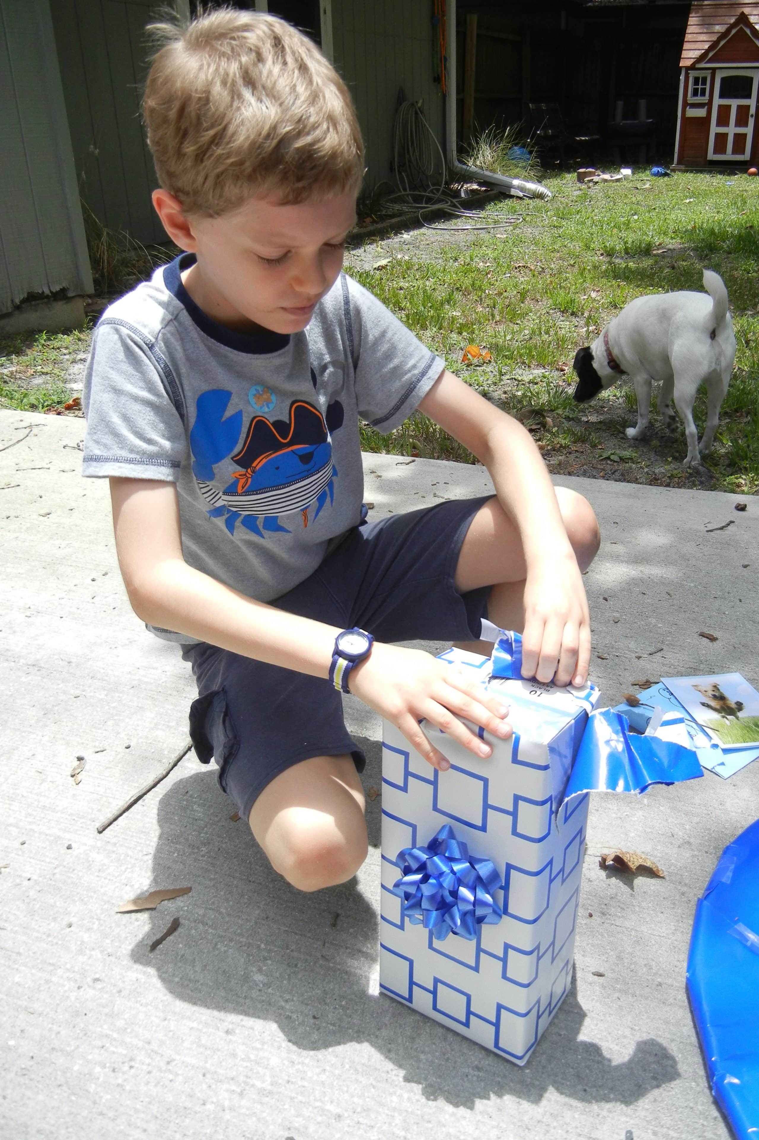 Grant turned 8 years old on May 20th. He was very excited to open presents. So much so that he had convinced Mama to let him open one before I even got home from work. When I came in the door, he immediately asked if he could open the rest of the gifts.
