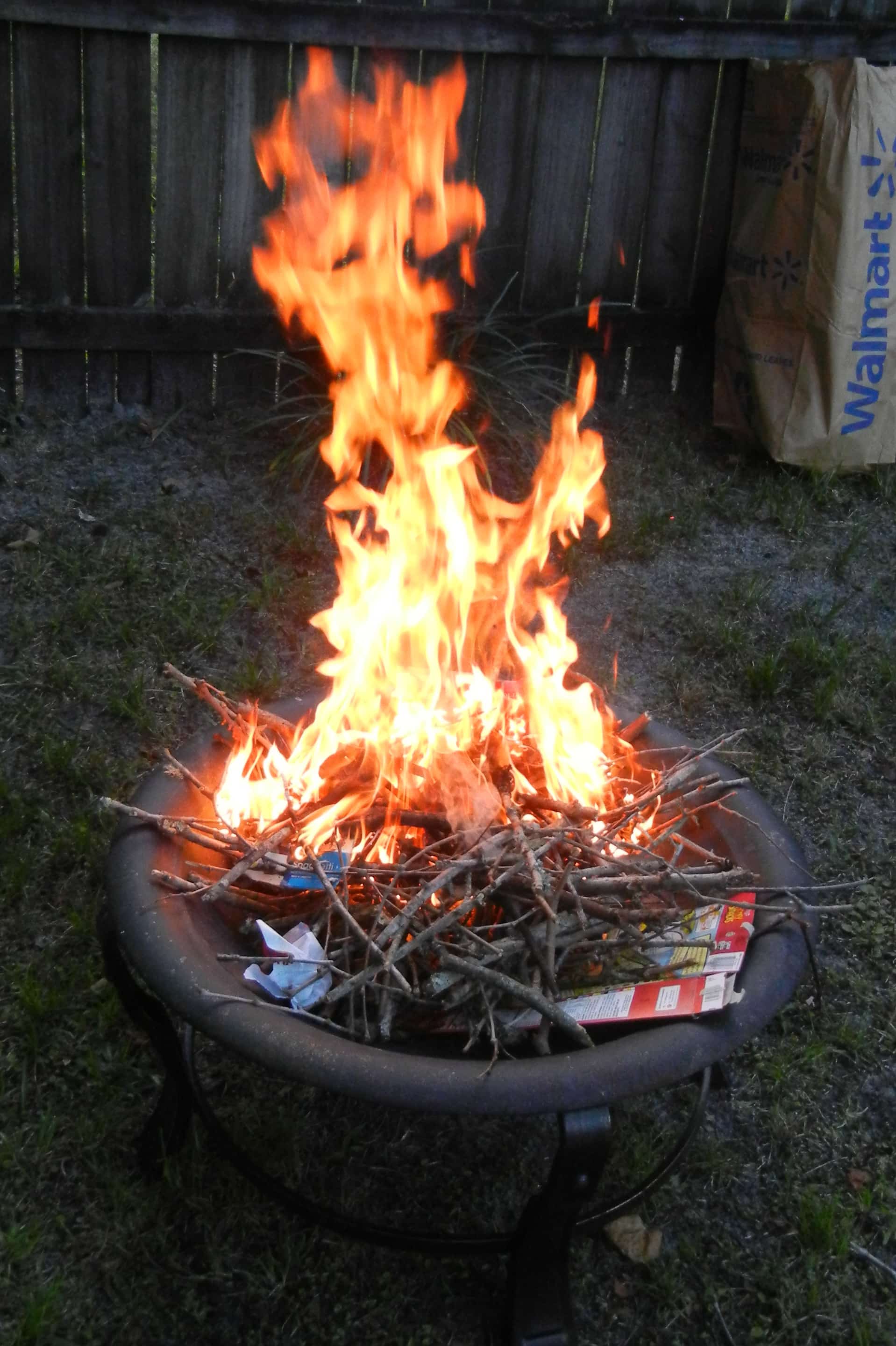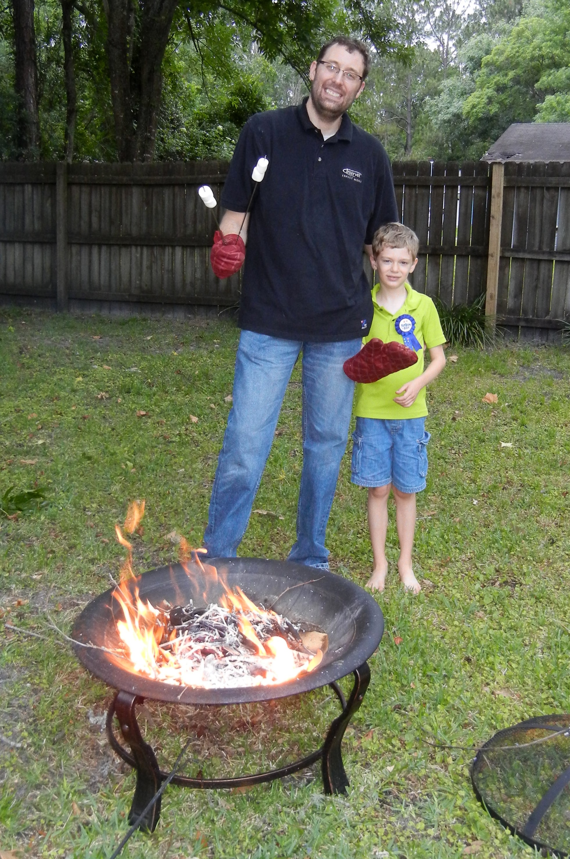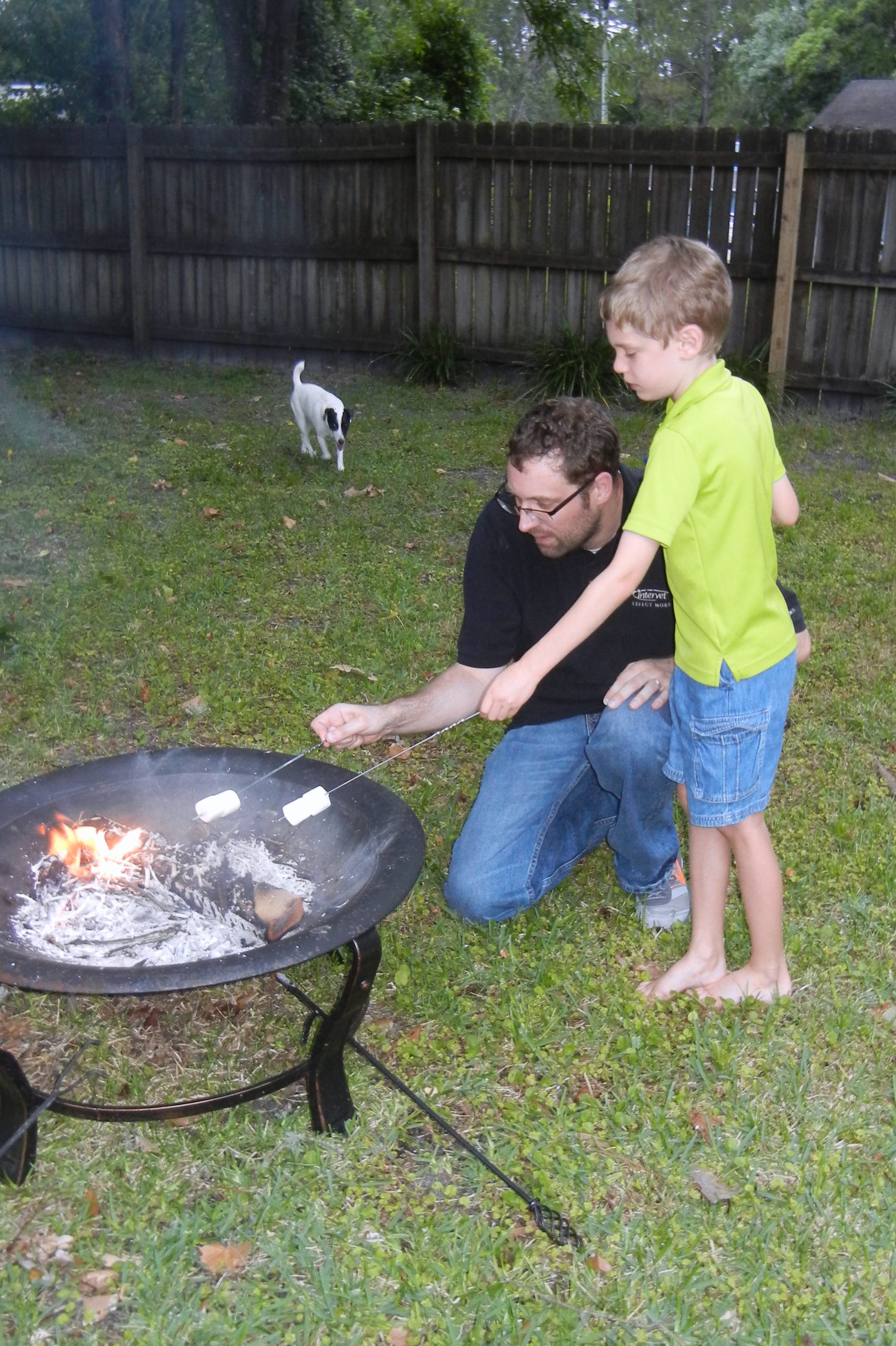 Unfortunately, there was a relatively good chance of rain on Friday night so plans had to be changed. As a compromise, we offered to let Grant sleep in the tent on his own on Friday night while it was still on the porch and then Grant and I would sleep in it outside on Saturday night when the chance of rain was less. Grant told me “usually your compromises aren’t very good, Dada, but this one is outstanding!”. Since the rain hadn’t started yet after dinner, we had time to make a fire in the fire pit and roast some marshmallows.