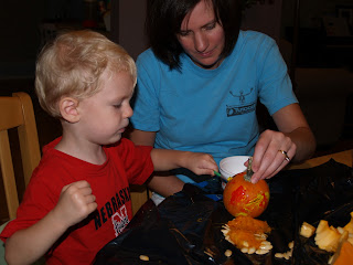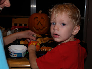 Grant seemed to enjoy trick-or-treating again this year, although I don’t think he totally understood the concept. He thought he was supposed to go into each house. He also wasn’t sure how the exchange of candy worked because he tried to take candy out of his bucket and give it to the folks who opened the door. Here are some pictures from Halloween 2010: