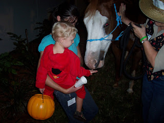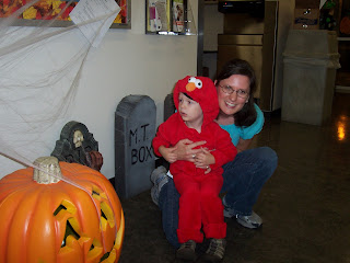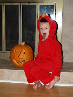 This Halloween, Grant dressed as Elmo. He had a couple of opportunities to suit up this year. Carol’s workplace has a special night at work each year during the week of Halloween for the children of employees to come and trick-or-treat. So on Wednesday night, Grant and Dada drove over to see Momma and get some candy. Then on Halloween night the three of us went for a short walk around our neighborhood to do some more trick-or-treating.