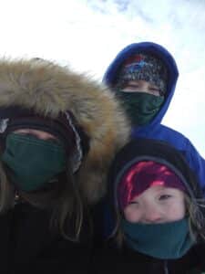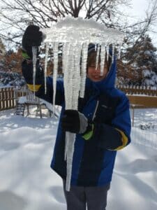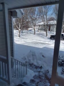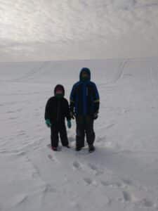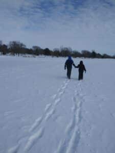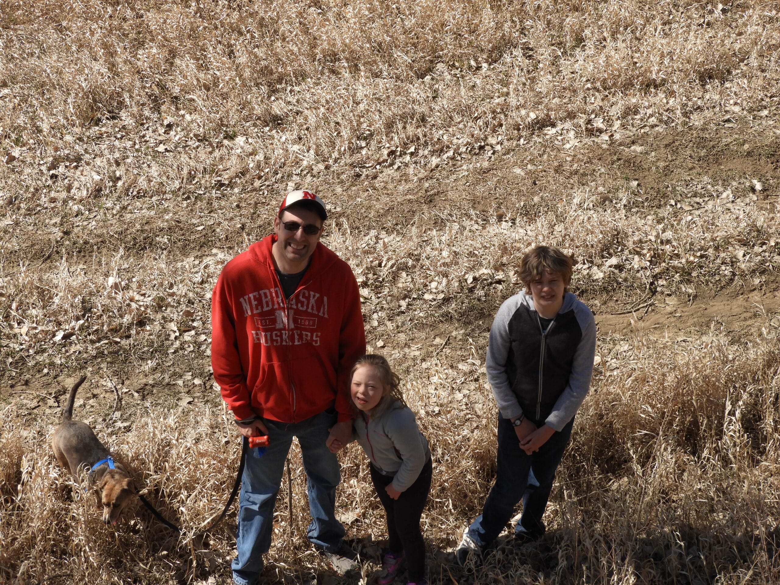 It was still so cold and snowy in February that Lincoln Public Schools called off school for a day. So even though our kids are not in the classroom learning, they got the day off. While I was working, Carol took the kids in zero degree weather over to Holmes Lake for some sledding down the dam. It was cold enough that the lake had frozen solid to walk on.