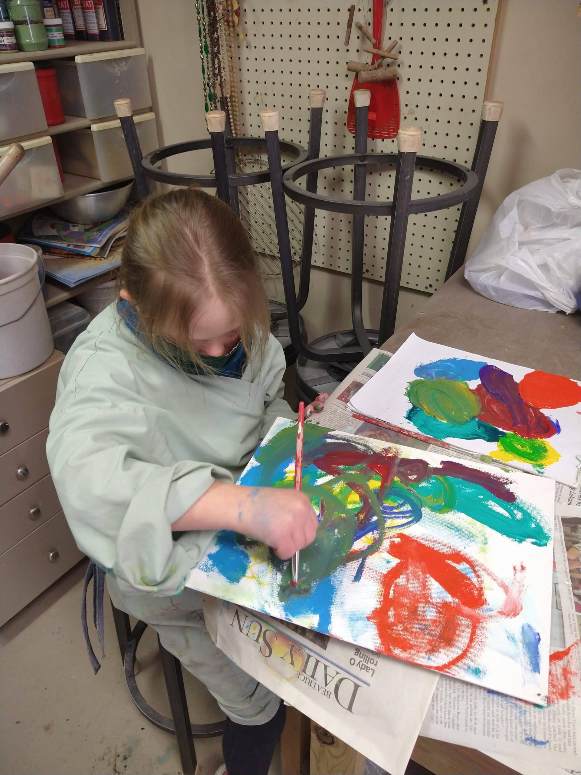 Carol and Grant made a weekend trip to Lawrence, KS to see family (and alpacas!). They enjoyed their time away and Jenna and I enjoyed some Daddy/Daughter time. On one of the days, we went to my parents house and did some art in my Dad’s studio. With Jenna and I on one side of the room and Mom and Dad on the other and all of us wearing masks, we were able to social distance.