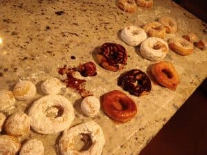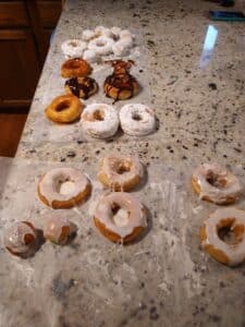 Another fun activity that Carol and I did together was make donuts. Carol had recipes for both yeast and cake donuts, so we made both kinds on separate occasions. We learned two things: homemade donuts are delicious and they take most of the day to make.