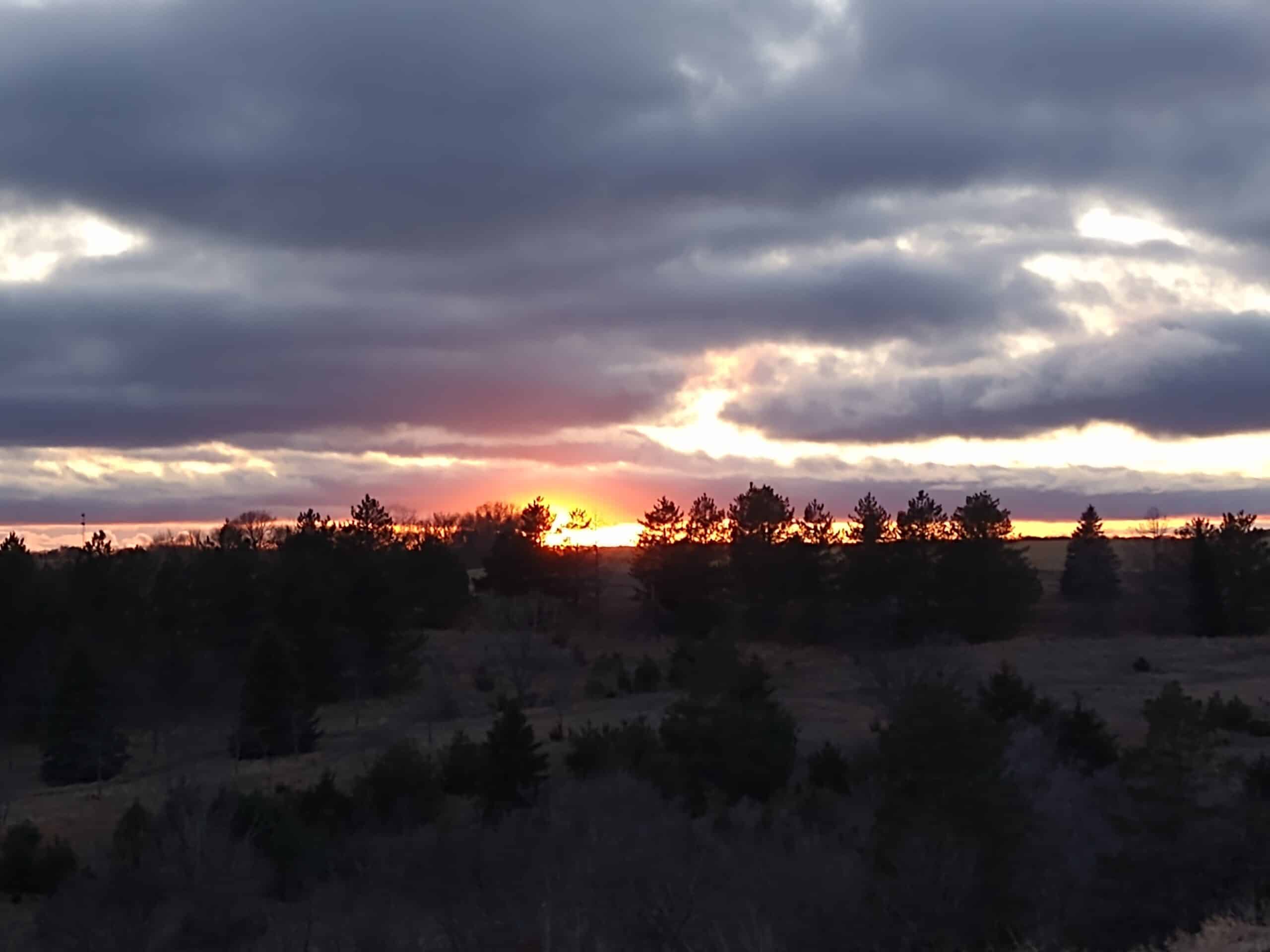 Grant in a Box, a cold opossum, Daisy, Dancer Jenna, Smiling Jenna and a Nebraska Sunset