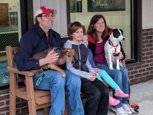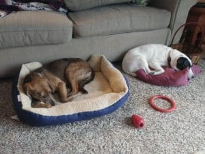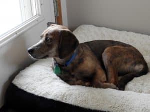 I found another dog that I thought might be a good fit for our home pretty much immediately after we returned Sam to the rescue, but agreed with Carol that we’d take some time before jumping into adopting a dog again. I agreed to wait until the snow melted and we’d gotten our new counter tops installed. But once those things happened, I convinced Carol that we should schedule a meet and greet with a dog named Alice at a different rescue than we’d used before because she’d been available for a couple of months and I didn’t want to miss out on her. We actually met both Alice and her sister Vera who were believed to be Beagle mixes and had been rescued after being abandoned in a field in Oklahoma along with a third sister. We all really liked both Alice and Vera, but decided that we’d adopt Alice. After much thinking and discussion, we settled on the name of Daisy for our new dog. Daisy has been a great fit for us and we don’t anticipate that we’ll have to return her. She is a great size for our household and is super gentle with both the kids and our older dog. While she also lacks training, she is much better behaved than Sam was. And much quieter, which is a bit strange for a Beagle-mix. Which we have confirmed by doing DNA testing. She is 50% Beagle, 25% Plott Hound, 12.5% American Eskimo Dog, and 12.5% Shih-Tzu. Welcome to the family, Daisy!