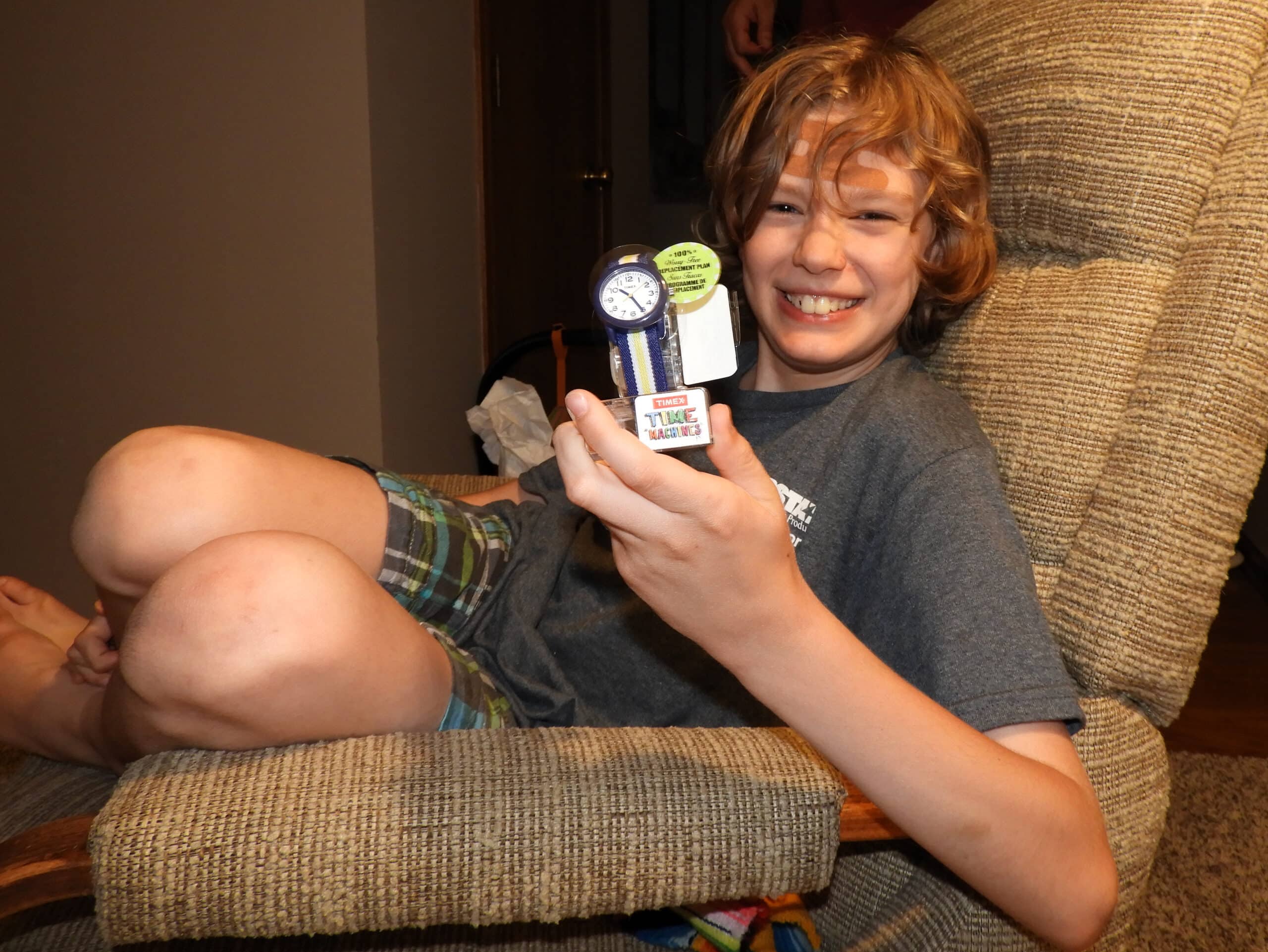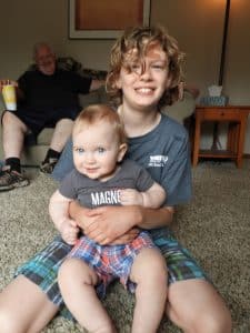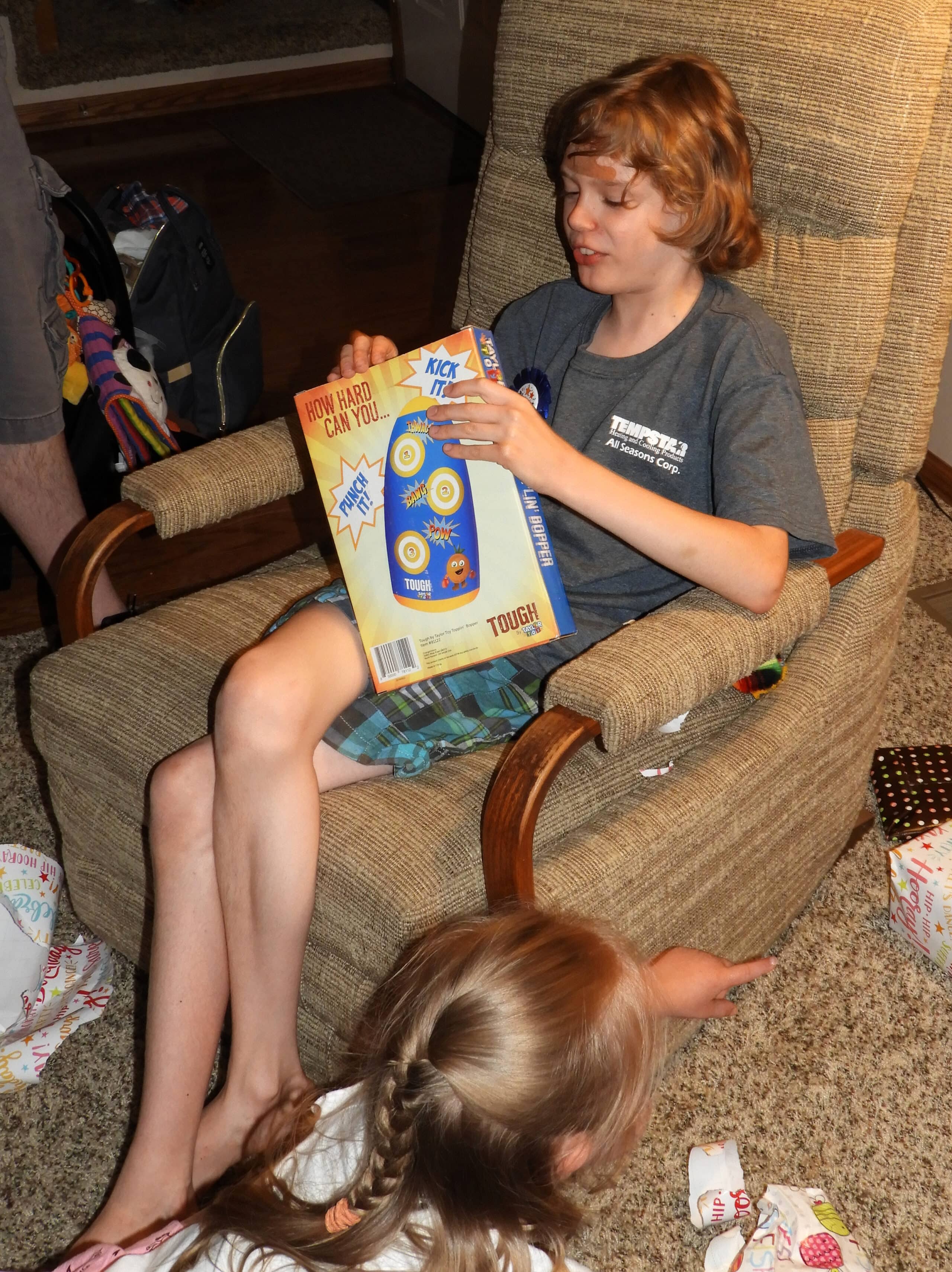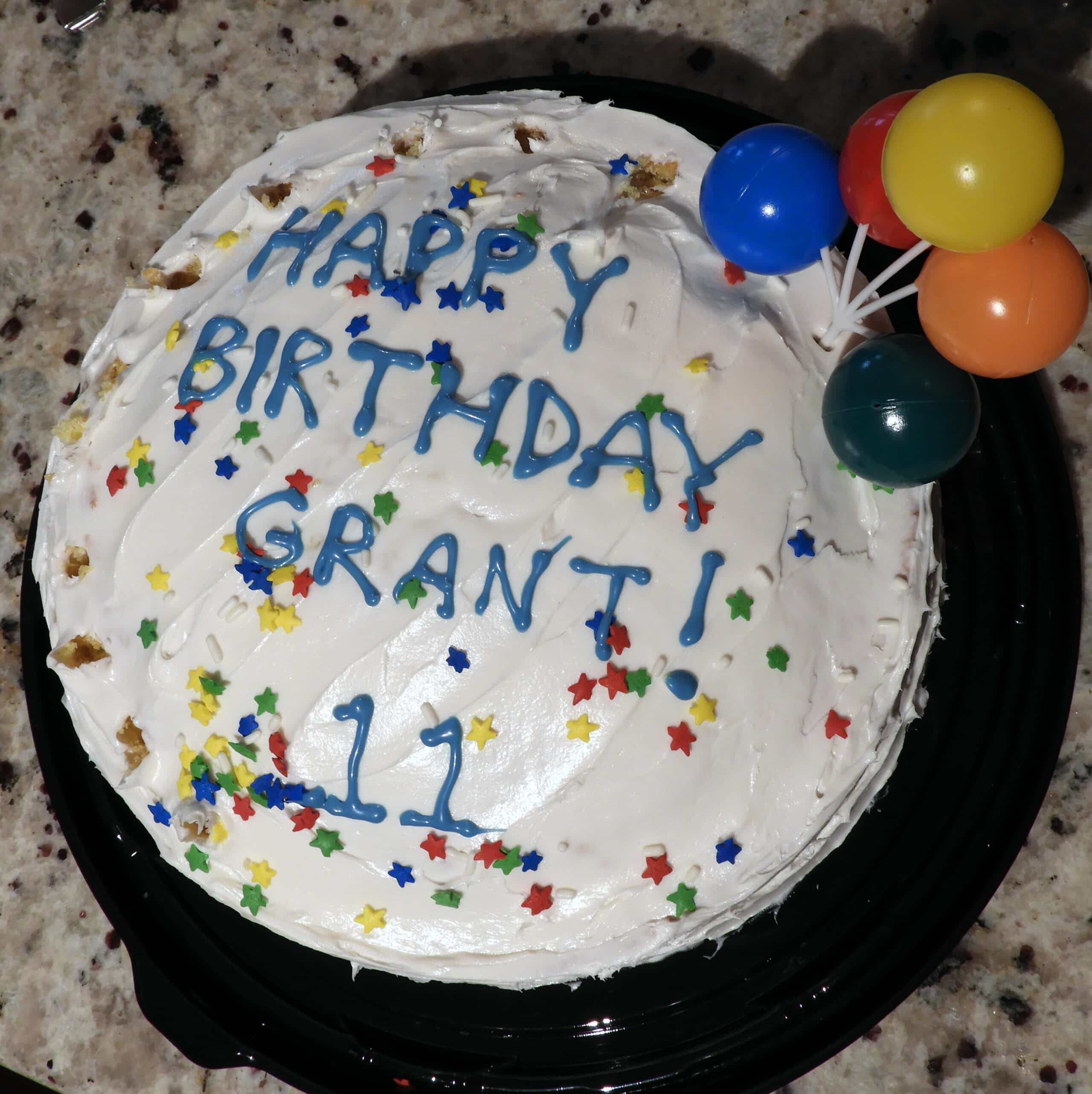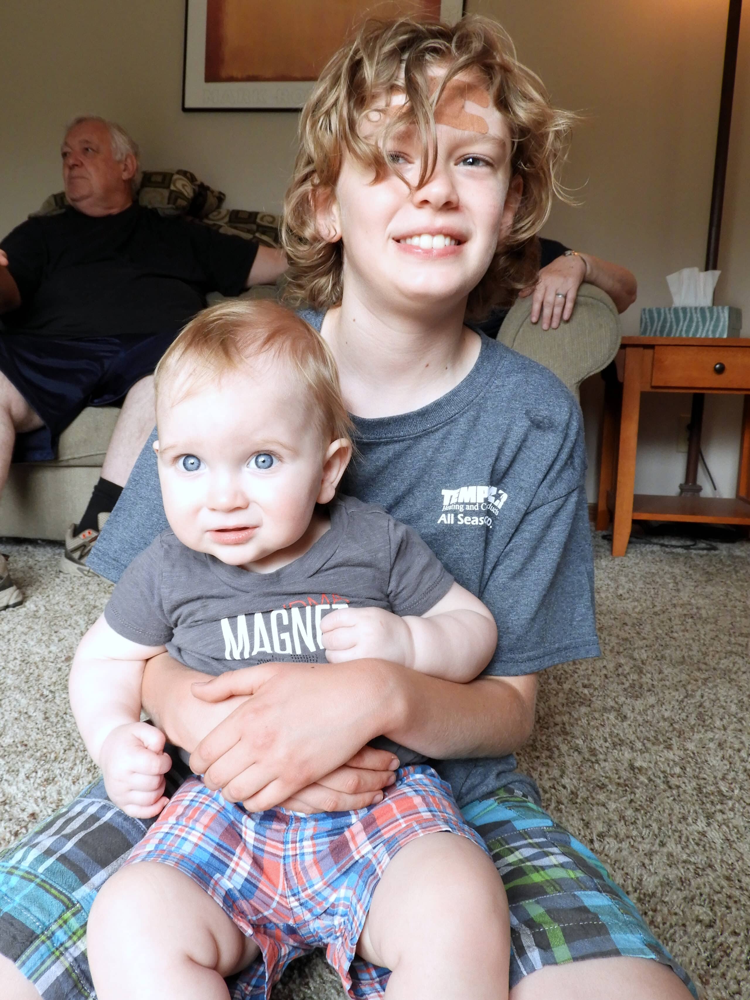 Grant turned 11 this year. We were excited to be able to have Nana come for a weekend right before his birthday and spend a few days with us. While she was here, we planned a birthday party for Grant and invited my parents, brother and sister-in-law and nephew, Beckett. It was nice to be able to celebrate Grant’s birthday with everyone. And Grant seemed to enjoy the day, even after it started off a bit rough. A couple of hours before people were set to arrive for his party, he fell off the banister in the living room and hit his forehead on the floor – which caused a large gash and a fair amount of blood loss. [You will note that he has a bandage on his head for the remainder of the pictures in May.]