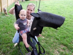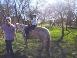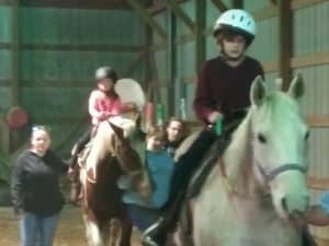 Grant and Jenna have begun taking therapeutic horse riding lessons. They both really enjoy being on the back of the horse. Grant has been able to “drive” the horse by himself through a course after learning how to make the horse stop and go, and turn left and right.