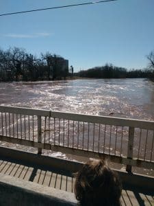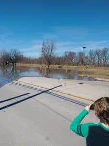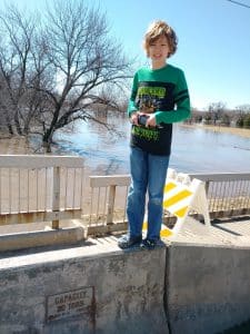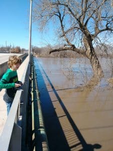 While we didn’t see much flooding in Lincoln, my hometown of Beatrice had some flooding that resulted in the bridges over the Big Blue River being closed. During the weekend that Carol was out of town, the kids and I went to Beatrice to see Gramma and Pa. While we were in town, Grant and I went went with Gramma to check out the flooding. Quite a sight!