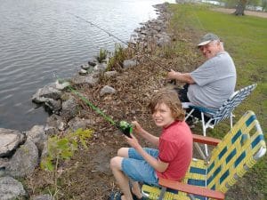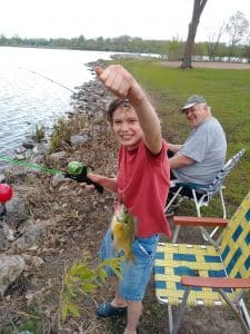 While Carol was away for the day at her rescheduled conference, we met up with my parents at a lake between Beatrice and Lincoln and had a picnic lunch and then did a little fishing. Grant caught his first Nebraska fish (and shortly after his second)! He was the only one of us to catch more than one fish.