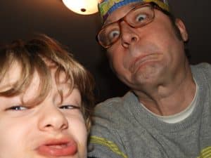 Ice cream, Grant’s crazy hair, Silly selfie, and two Grant silly faces.