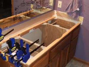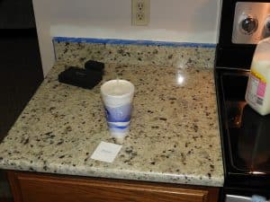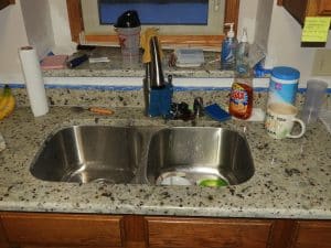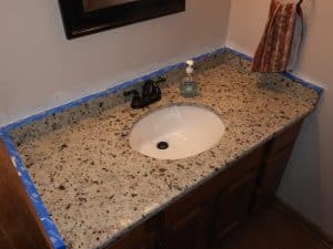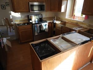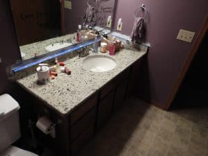 One of the things that we didn’t really like about this house when we bought it was the kitchen counters. So we decided to get the old counters replaced with new granite counter tops. And while we were at it, we had them replace the counters in two of the bathrooms to match. Of course, projects always end up larger than you originally planned. So we ended up with new sinks, light fixtures and paint as well. Some pictures before and after the counter tops were installed are shown; the final product will be shown in a future blog post.