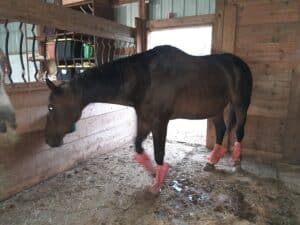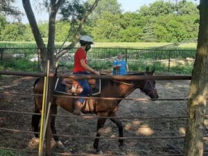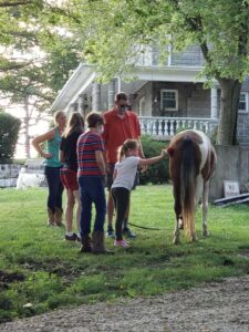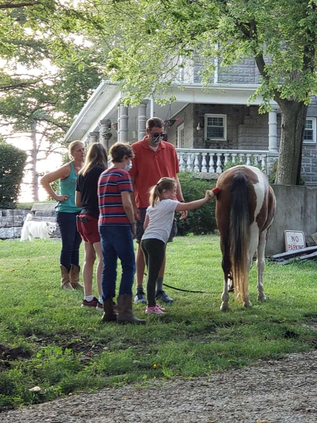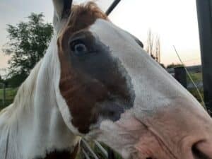 There is a local therapist who uses equine therapy with some of her patients. Carol volunteers once a week to go out to the acreage and help feed, water and clean the horses’ stalls. Meet Mona, Chance, and Dixie.