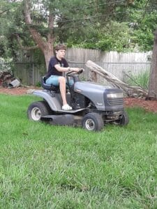 Grant got his first lesson in driving a lawn mower. I am sure this will come in handy one day very soon.