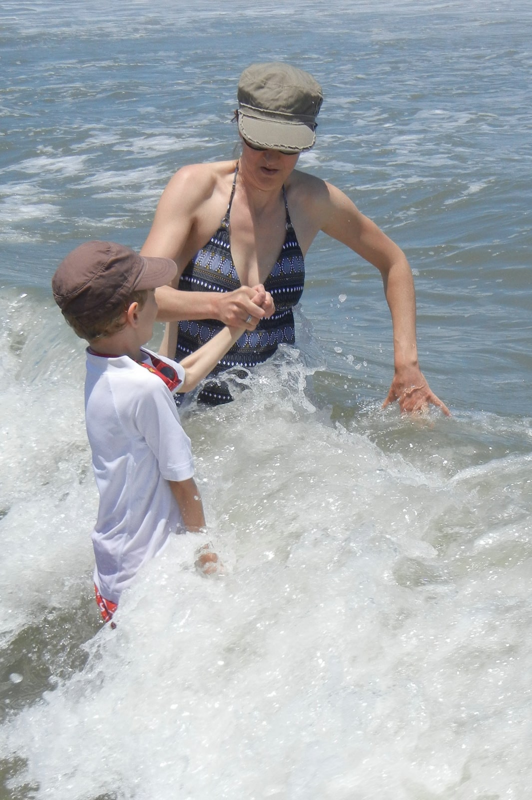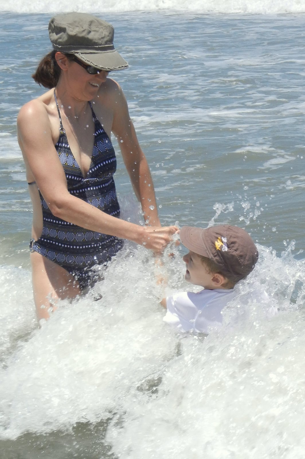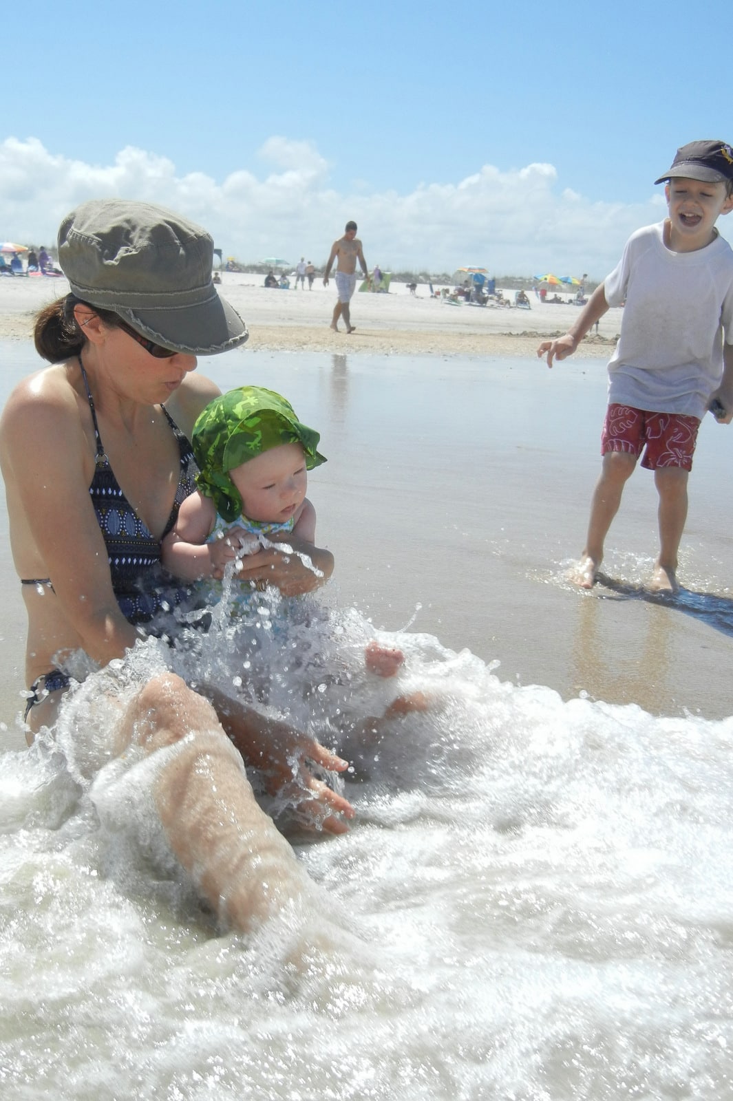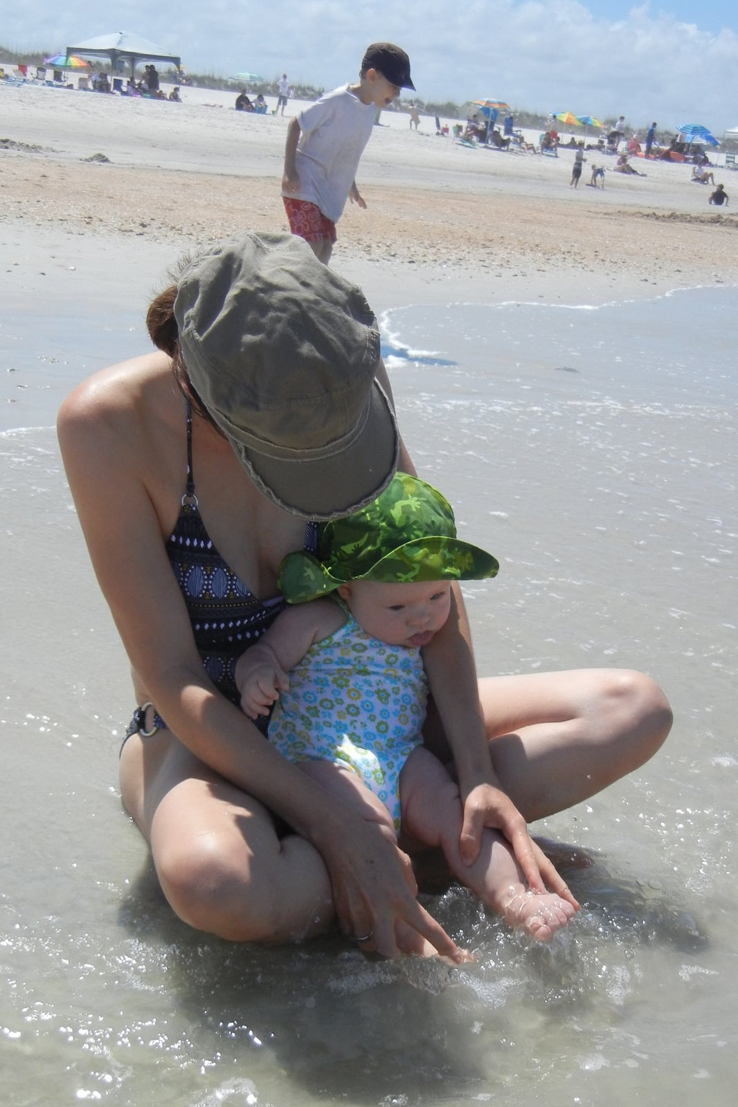 When Jenna awoke, we made our way back down to the water and Carol and Jenna sat in the water. This was Jenna’s first trip to the beach and we were curious if she would enjoy the water as much as Grant does.