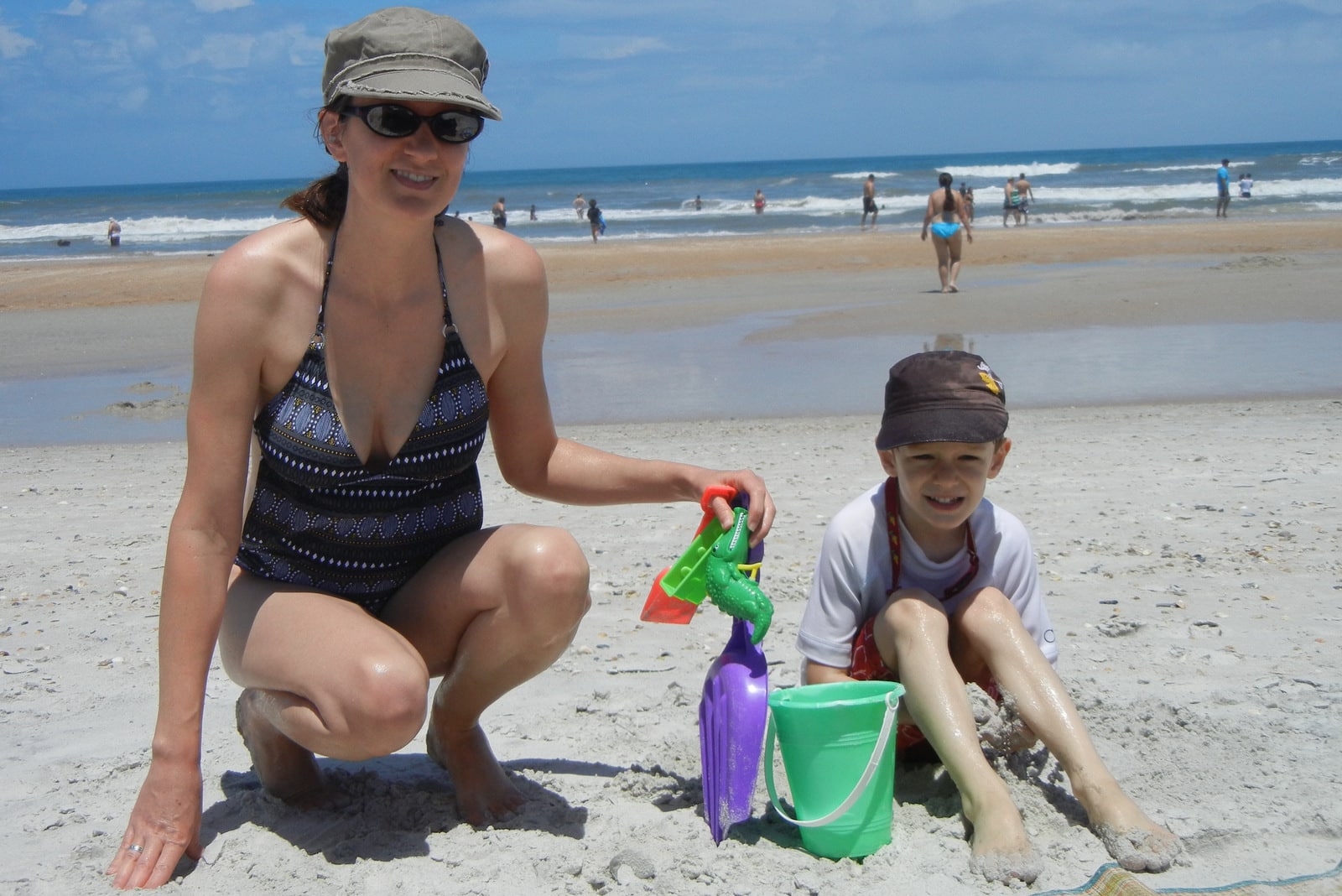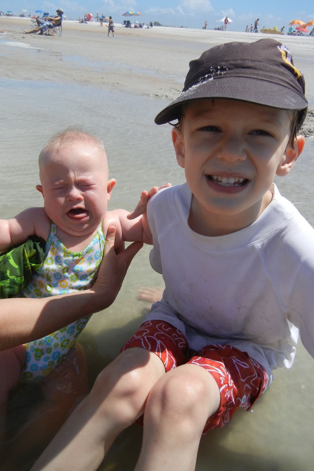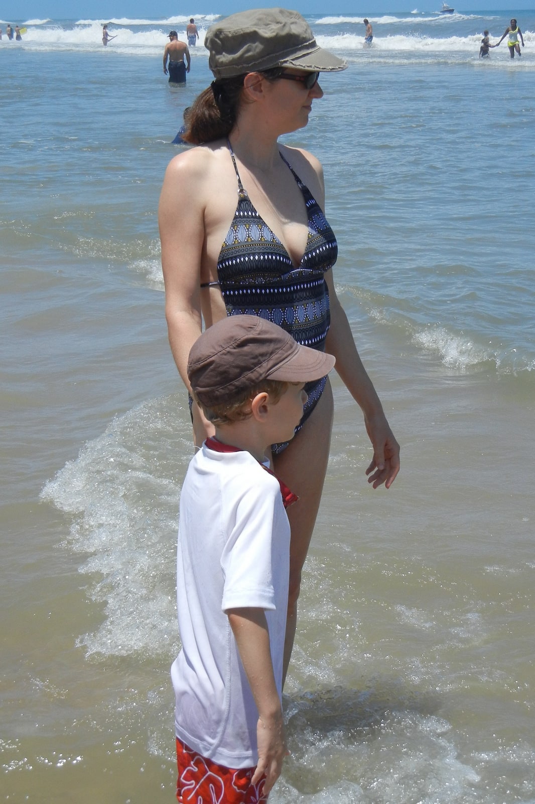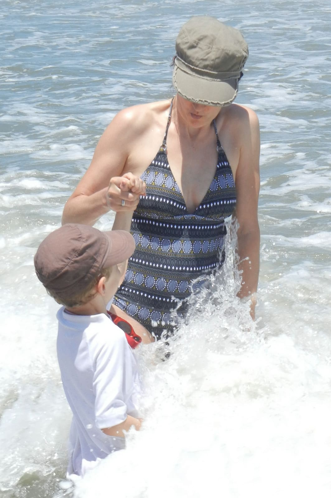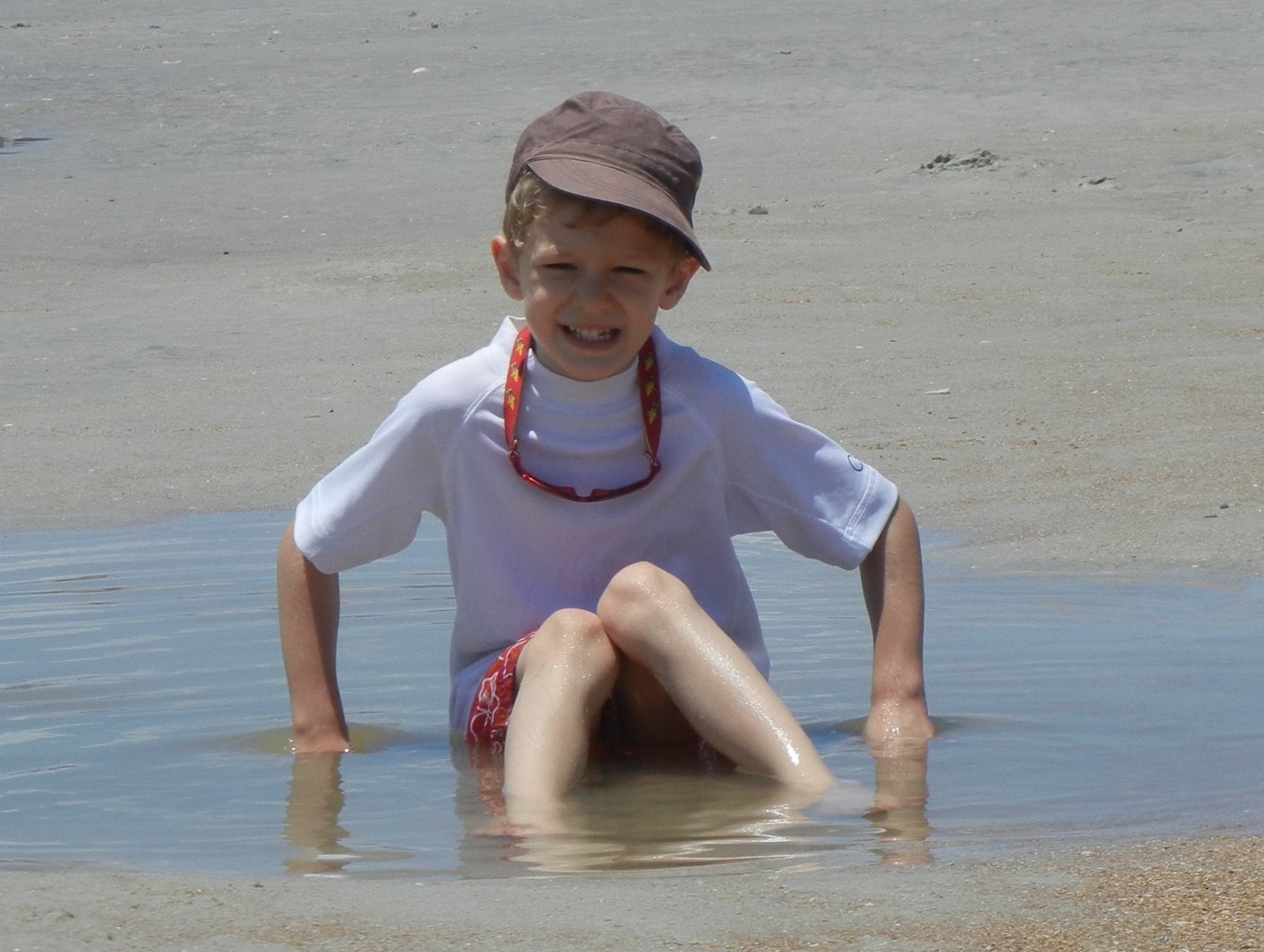 When Jenna awoke, we made our way back down to the water and Carol and Jenna sat in the water. This was Jenna’s first trip to the beach and we were curious if she would enjoy the water as much as Grant does.