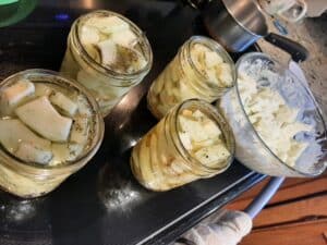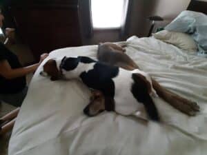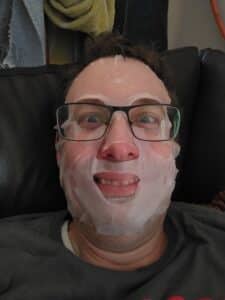 The dogs cuddling, flowers from the garden, canning cucumbers and a cucumber salad, and Nate in a facial cleansing mask getting beautiful.