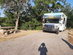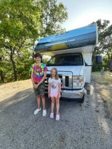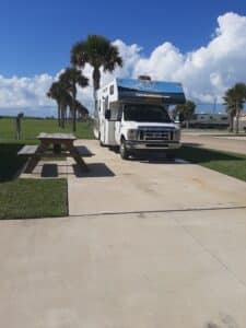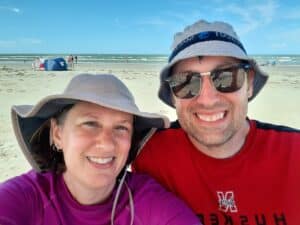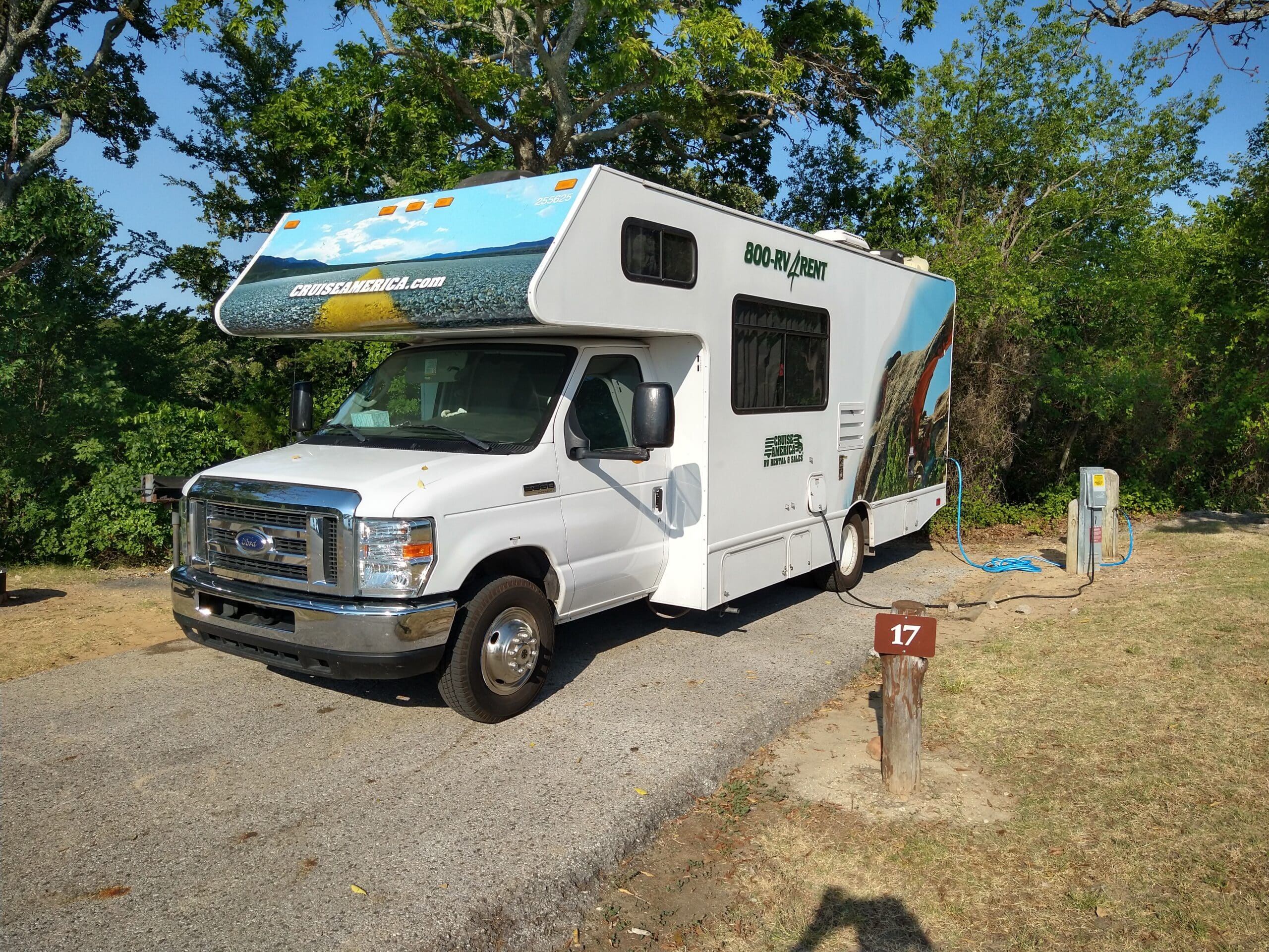 We had been talking about buying an RV for a while, but decided we didn’t want to jump into RV ownership until we had tried one out. So we rented an RV from Cruise America and picked it up in Omaha. We packed up all our things and headed south to the nearest beach – in Galveston, TX. We split our drive in half and stopped for one night in Oklahoma.