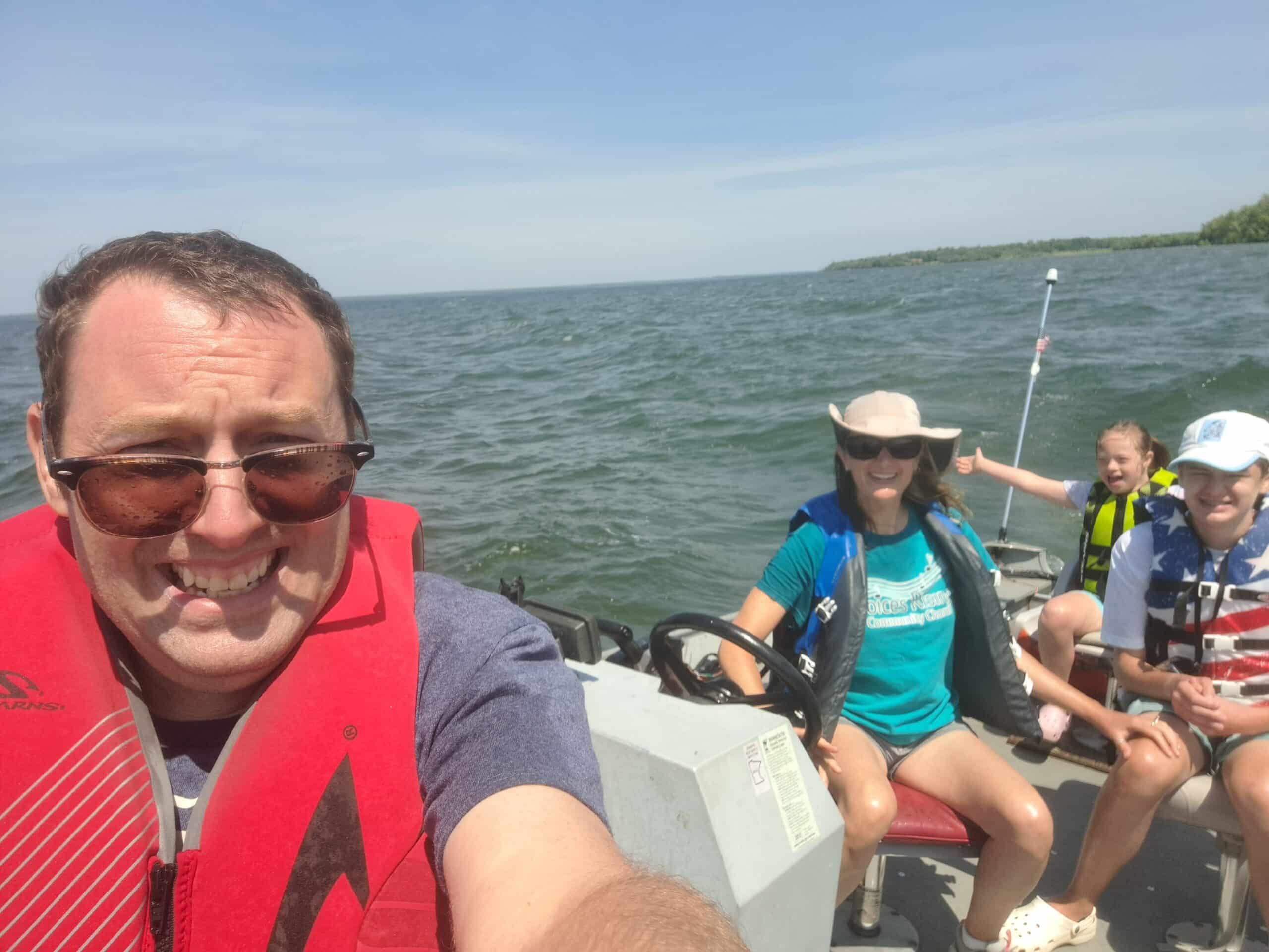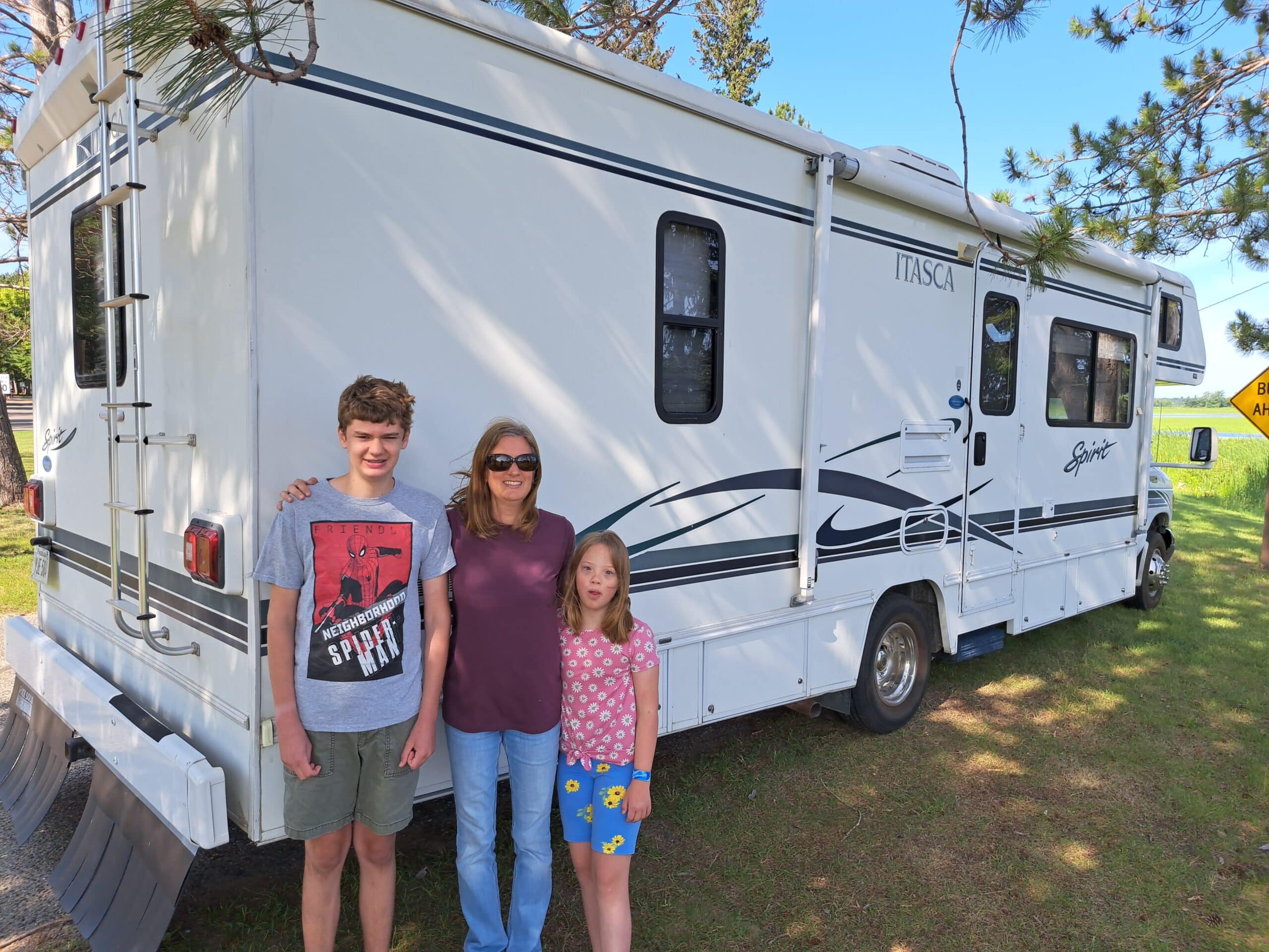 For our summer trip in 2023, we drove our RV up to a campsite on Leech Lake in Minnesota. Carol spent time on Leech Lake in her younger years as her family would travel up there to stay at a family cabin. It was neat to show the kids the lake where Carol spent time. We rented a boat and were even able to drive the boat by the old cabin. It was a fun trip.