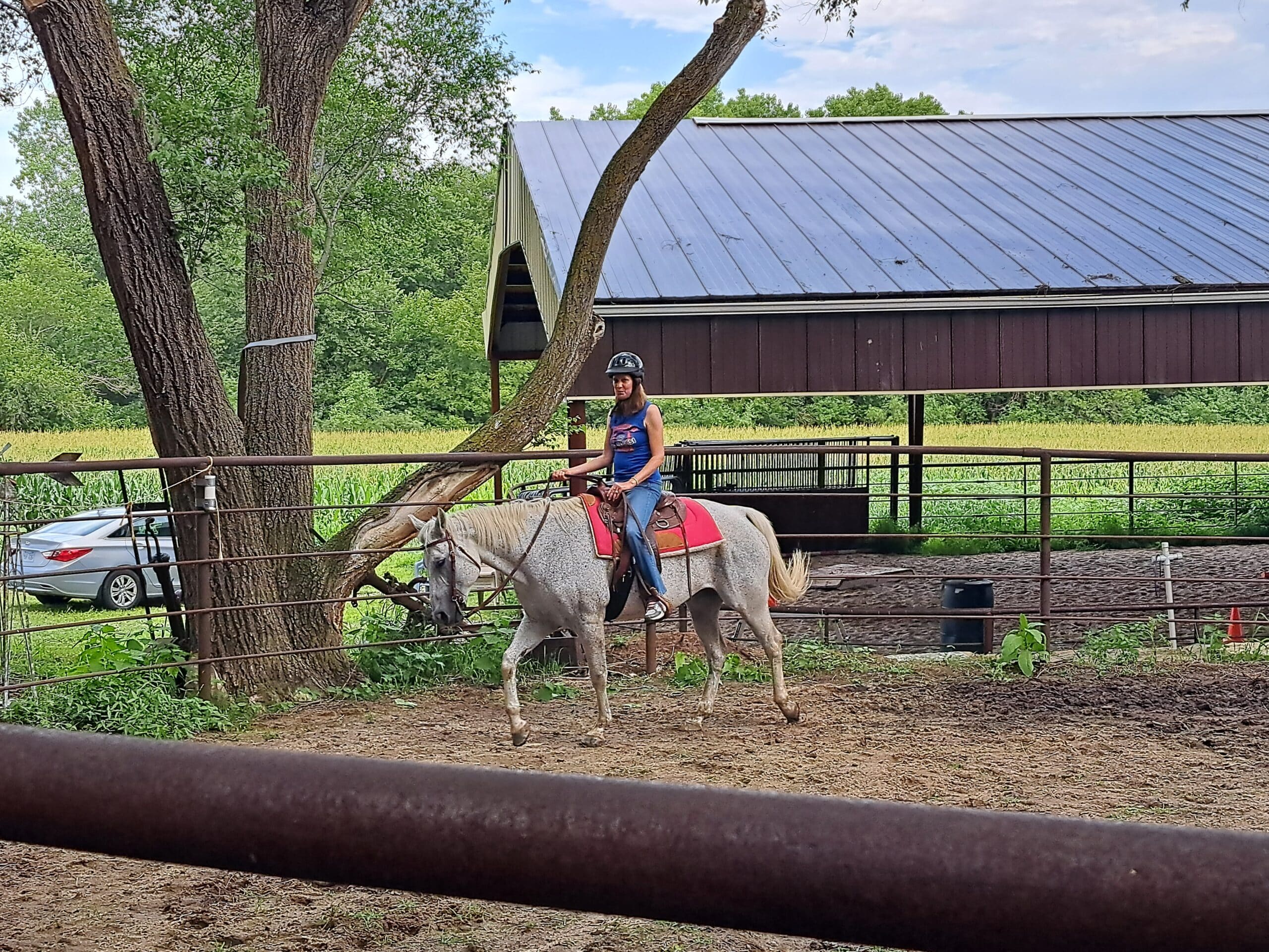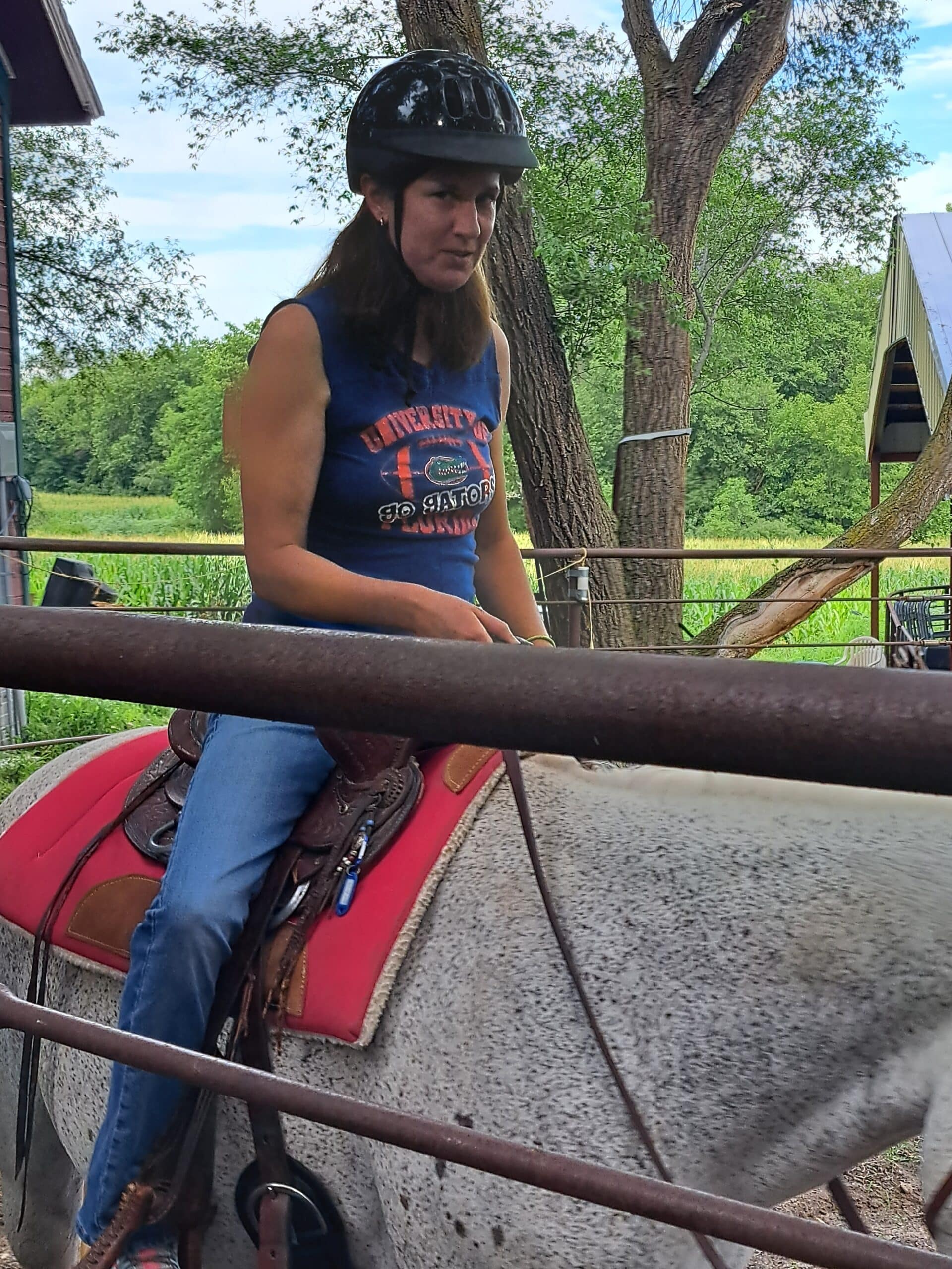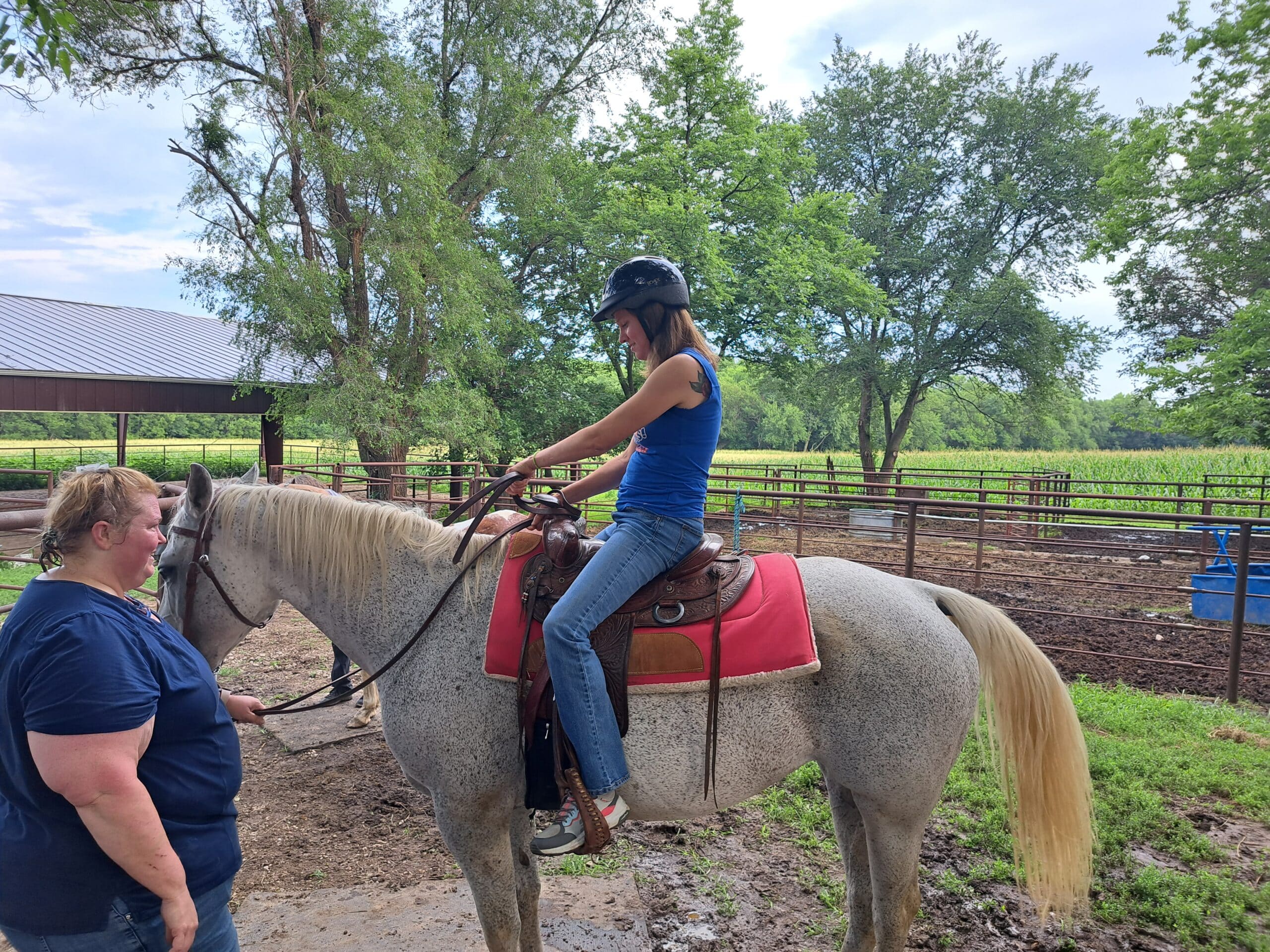 Carol got a chance to ride one of the horses, Molly, at the kid’s horse riding lessons!