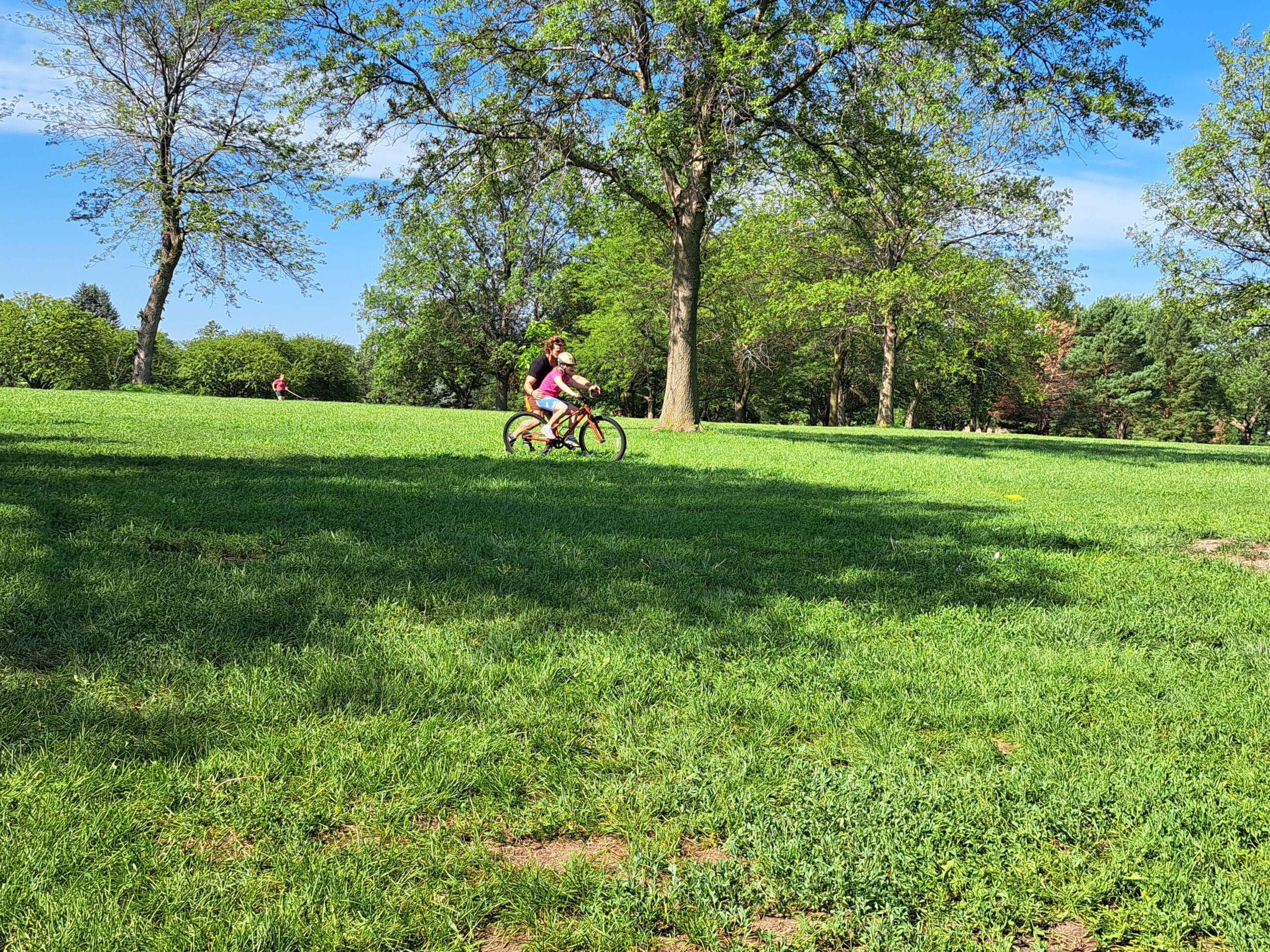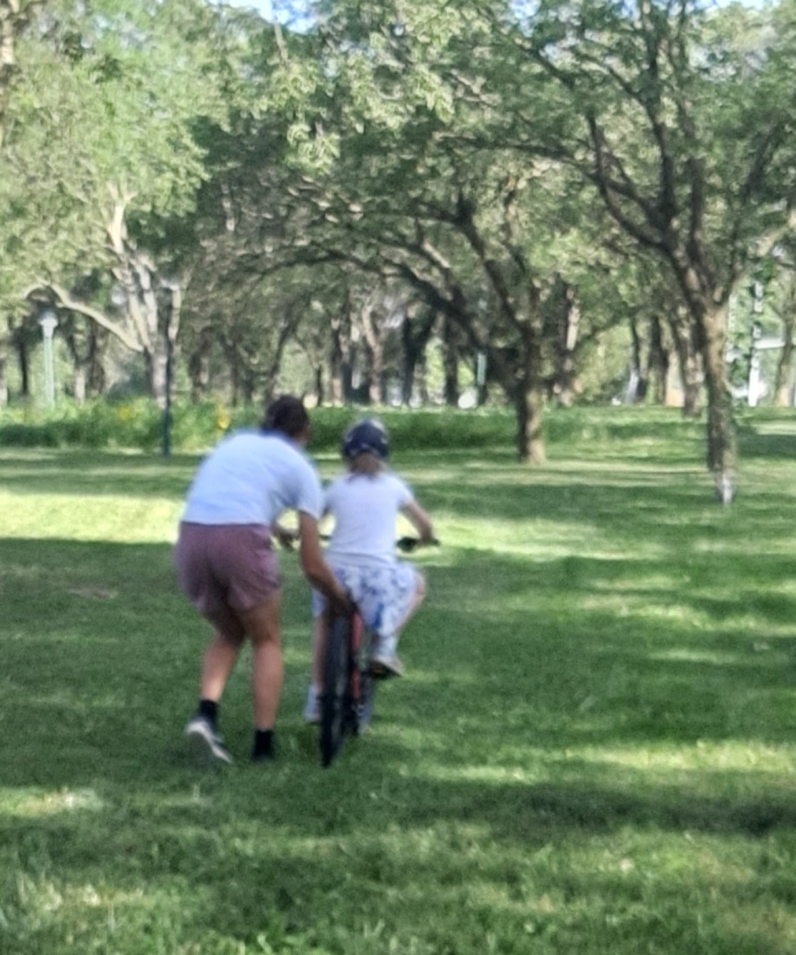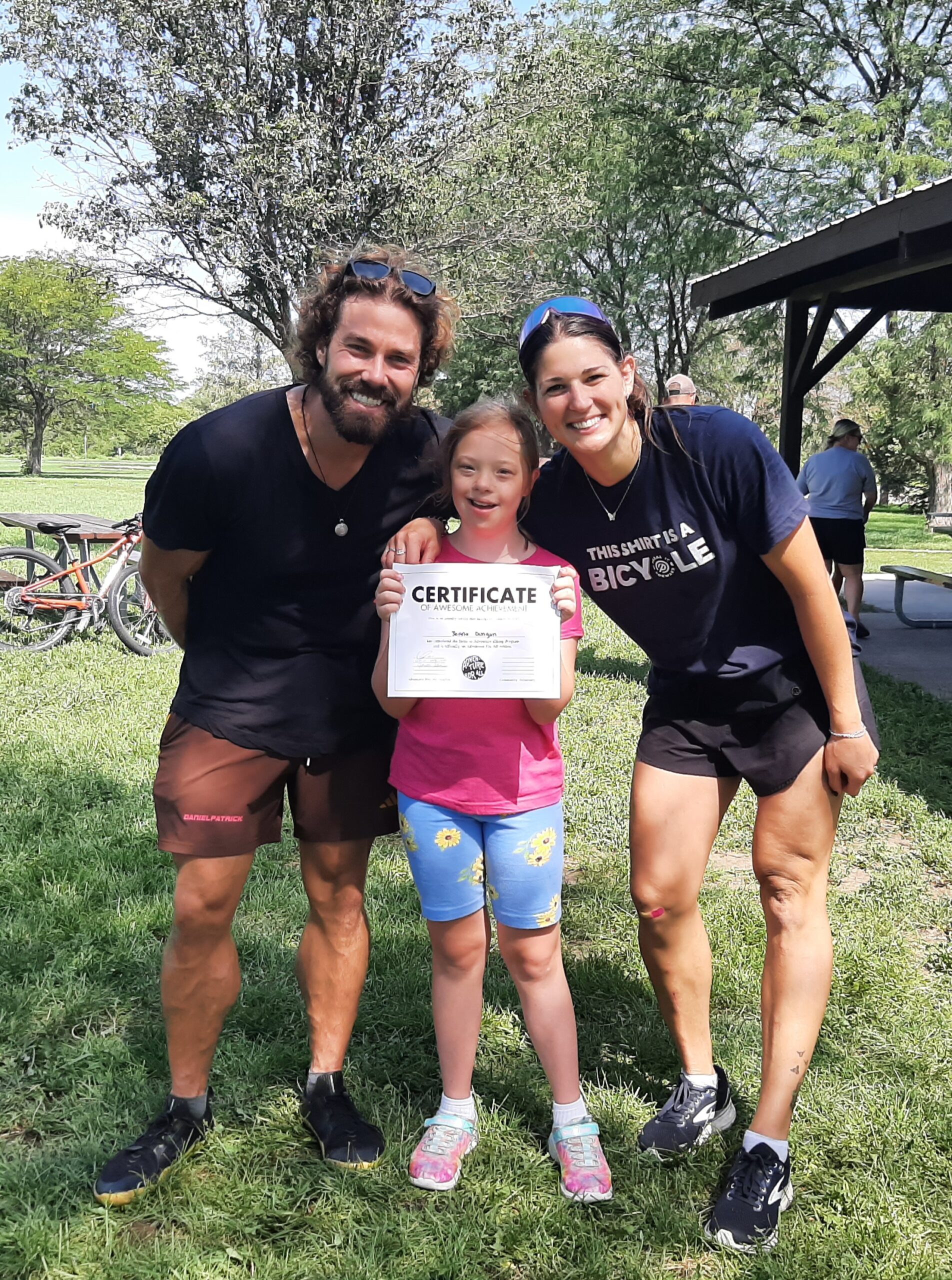 Jenna participated in a bike camp where she made really good progress. To encourage Jenna to work hard, her Aunt Laura came to town and went with her to bike camp one day. It was a great experience.