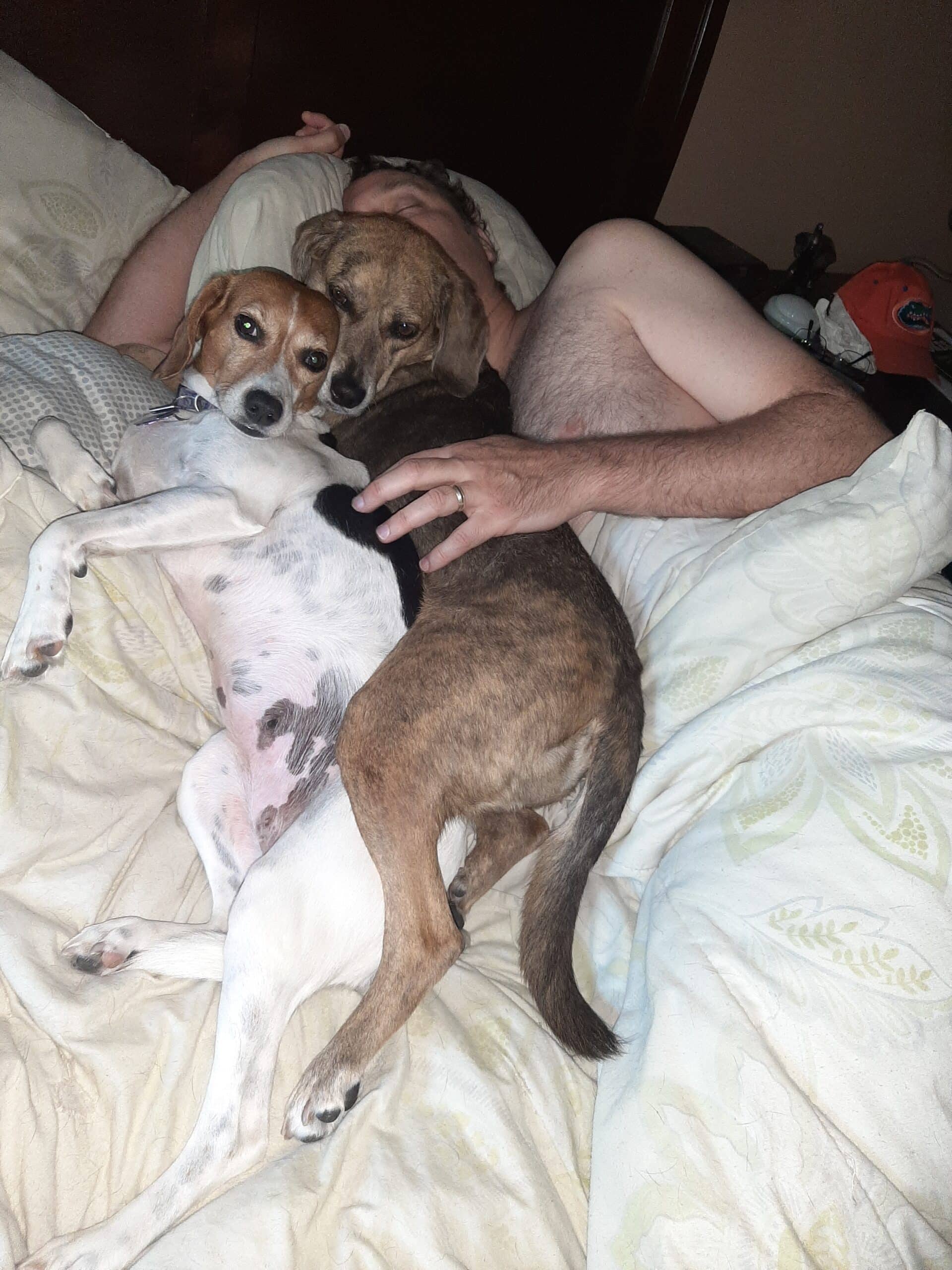 Josie rolled over, Grant and a stick bug, Welcoming Snoopy, Chillin’ in the pool, Asleep with the dogs, Harvest of carrots and a full moon.
