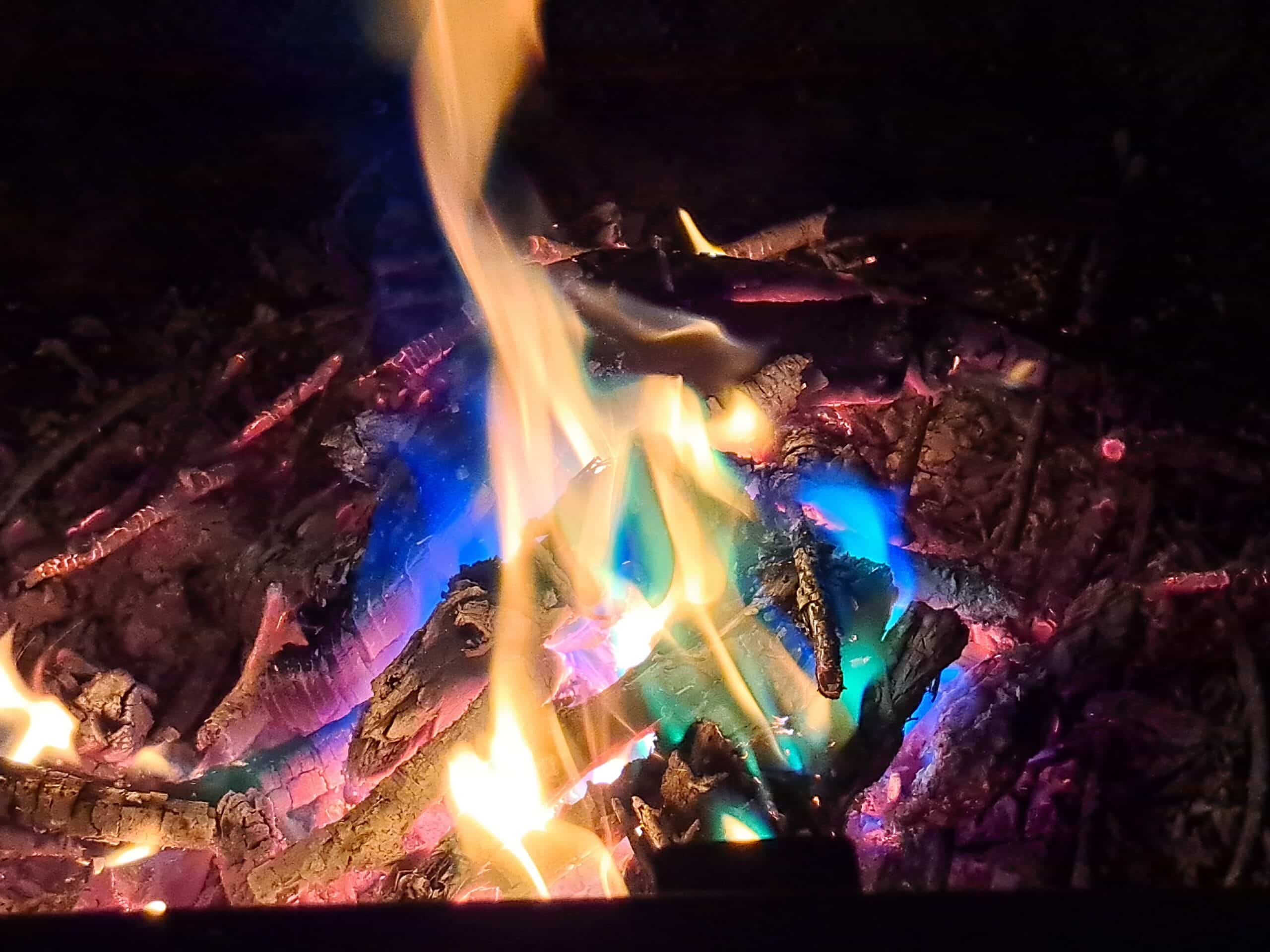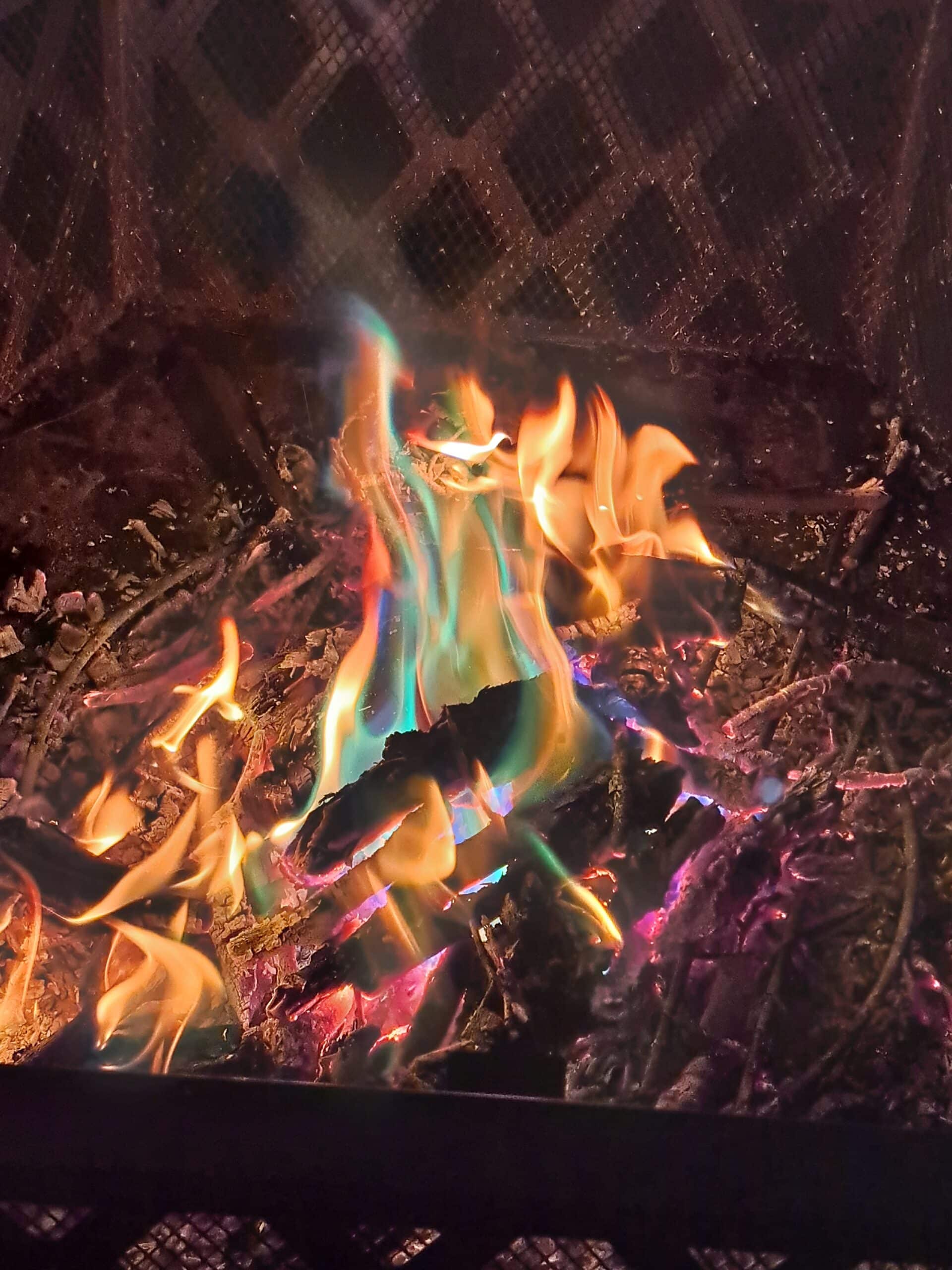 We bought some cool powder to add to the firewood in the firepit to make some really cool colors.