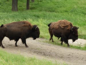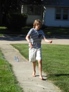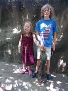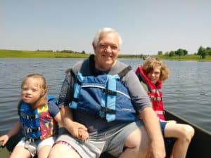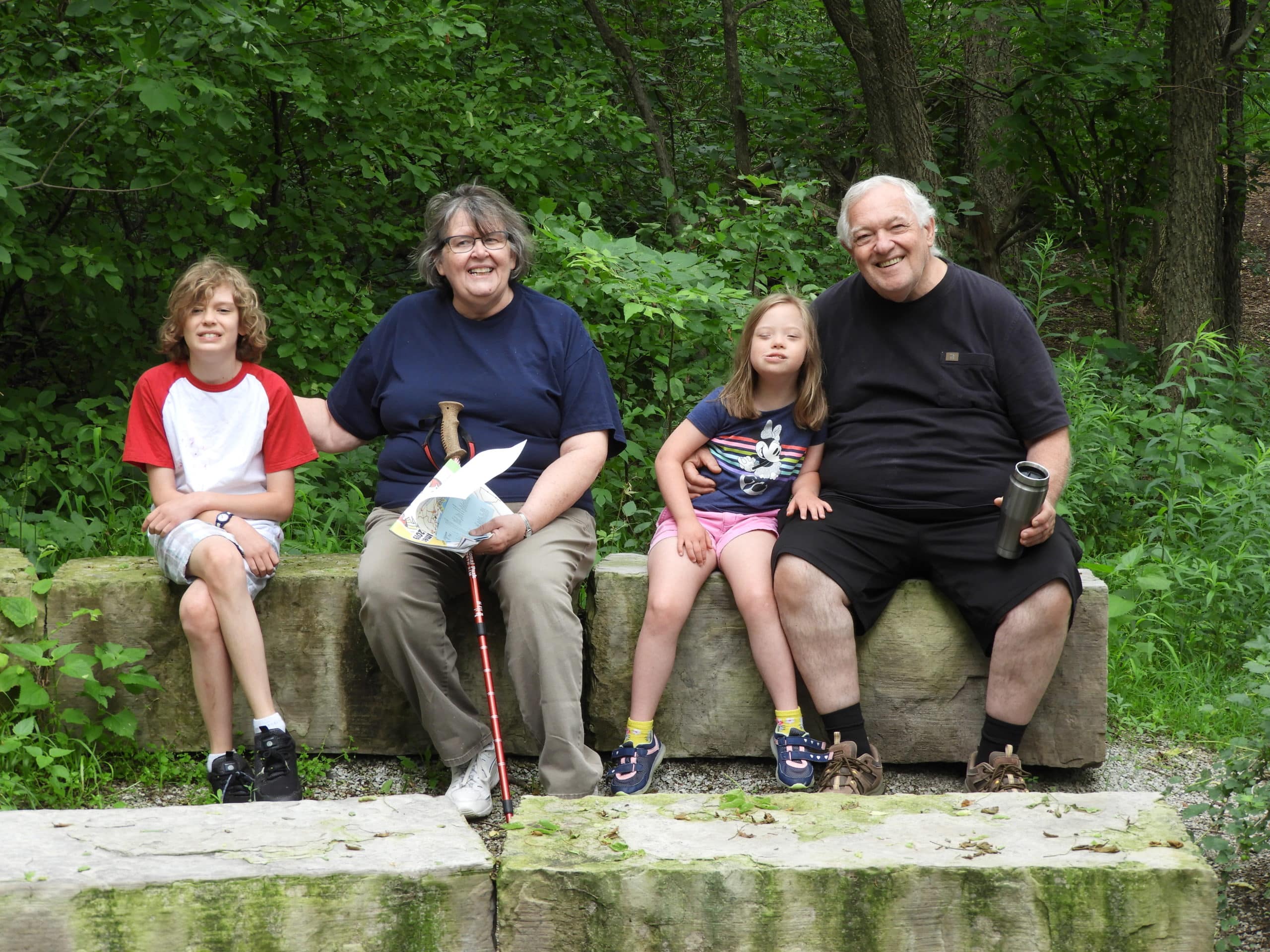 On a separate day, while Carol was out of town, Mom and Dad came up to Lincoln and we went hiking around Pioneers Park Nature Center. The kids enjoyed seeing some animals, like Geese, Frogs, and Buffalo. Jenna enjoyed using Gramma’s walking stick. Luckily there were two in the car, so Jenna could have her own.